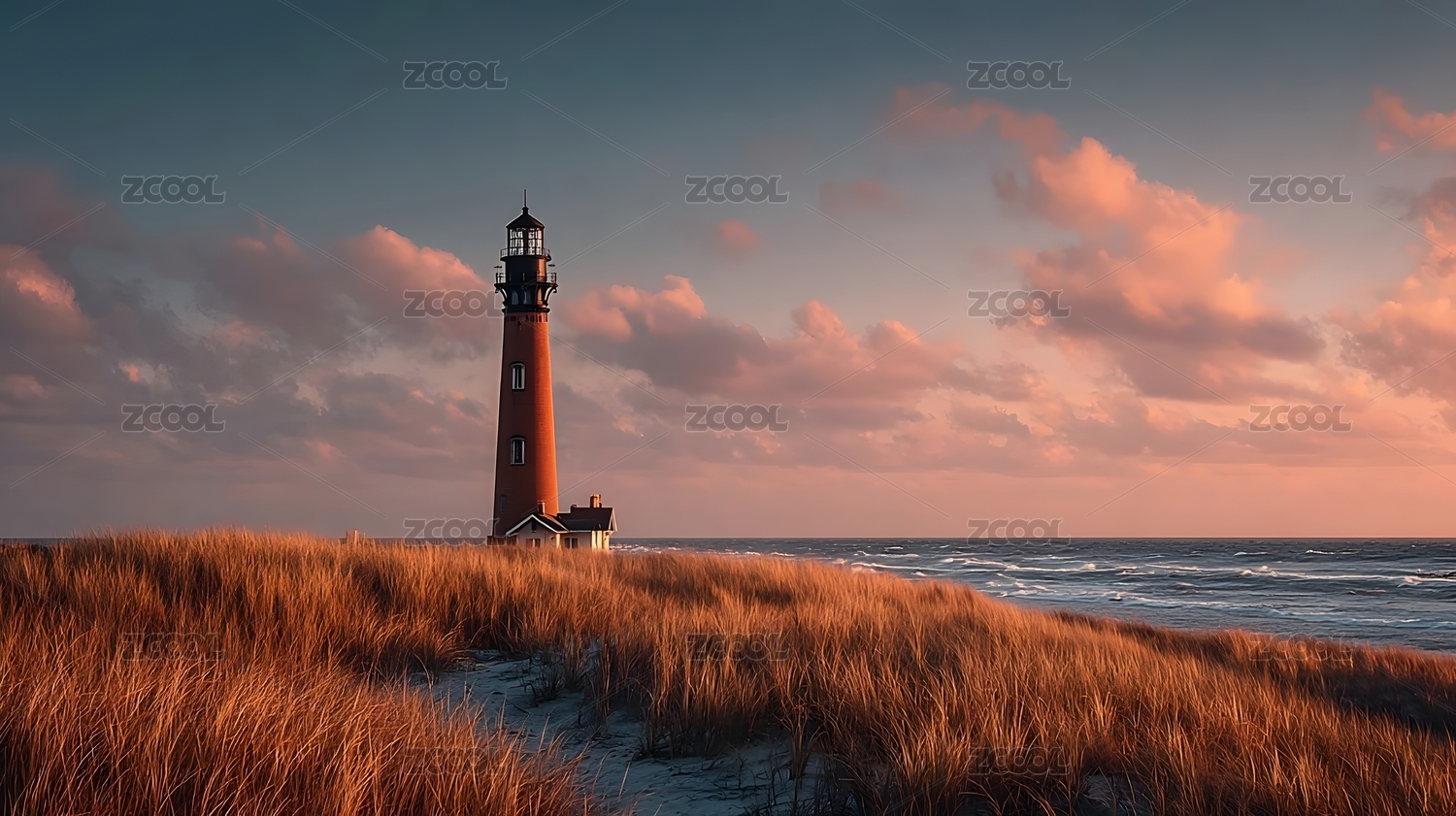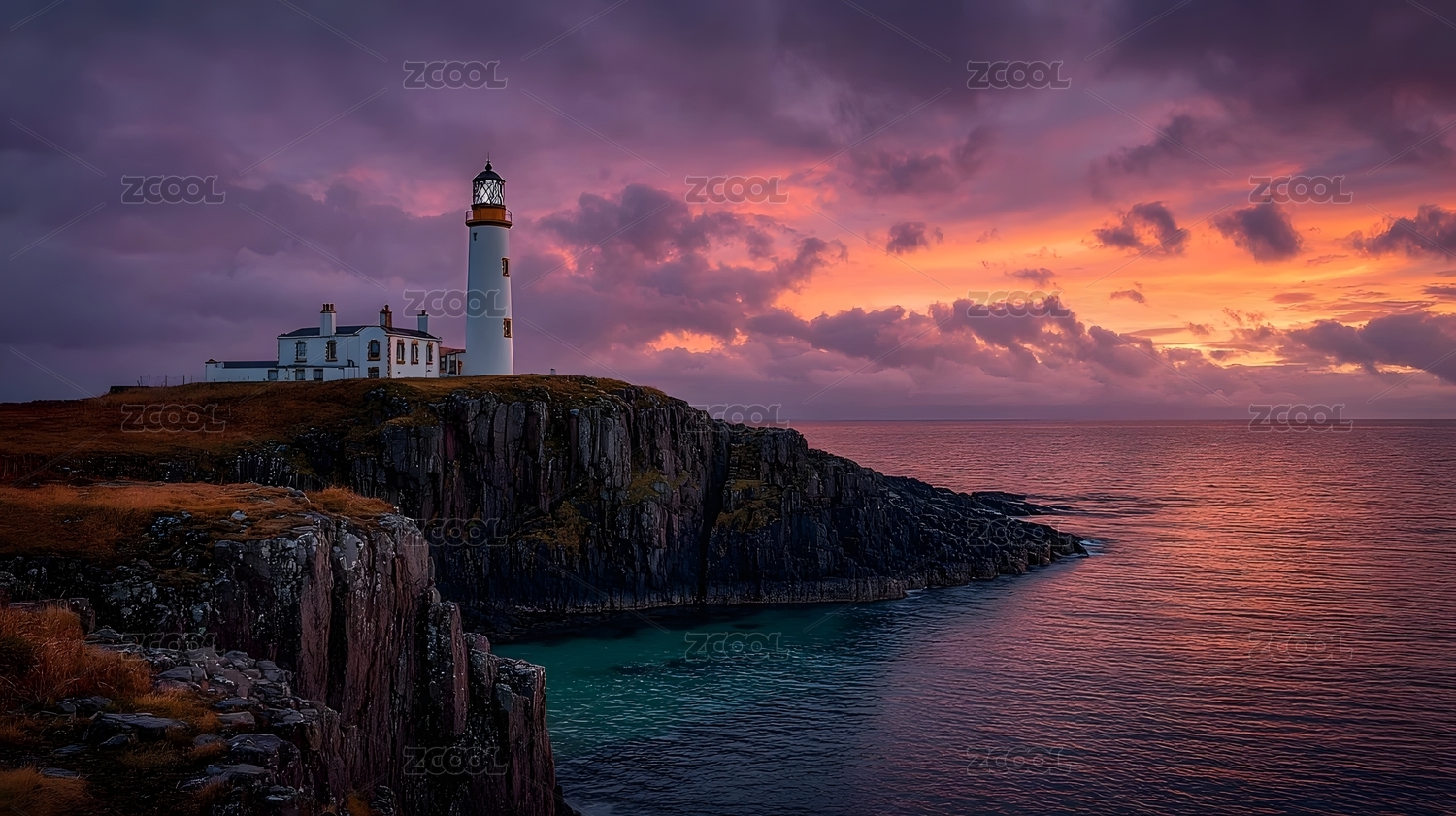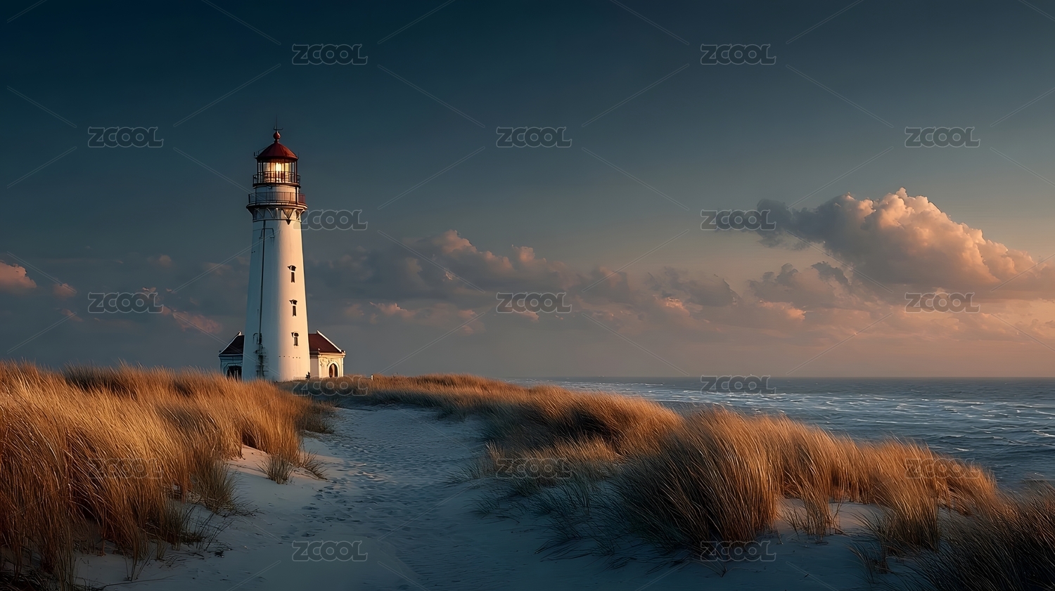 自然,草地,风景,户外,天空,海岸,岩石,晚霞,灯塔,海滩