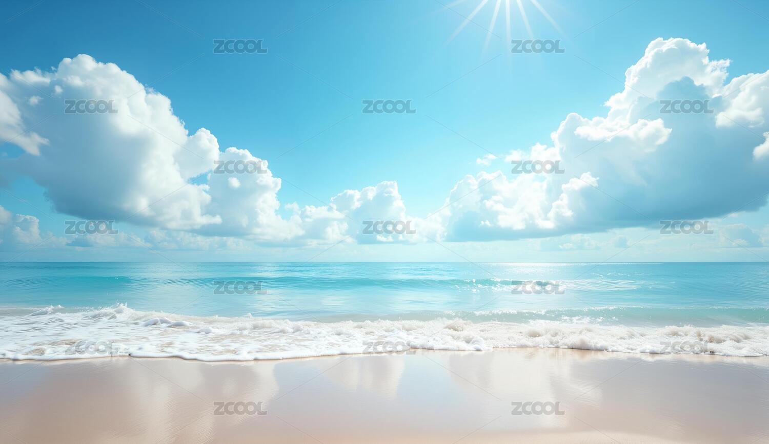 海边,海洋,浪花,沙滩,白云,蓝天,阳光,海水,泡沫,海浪