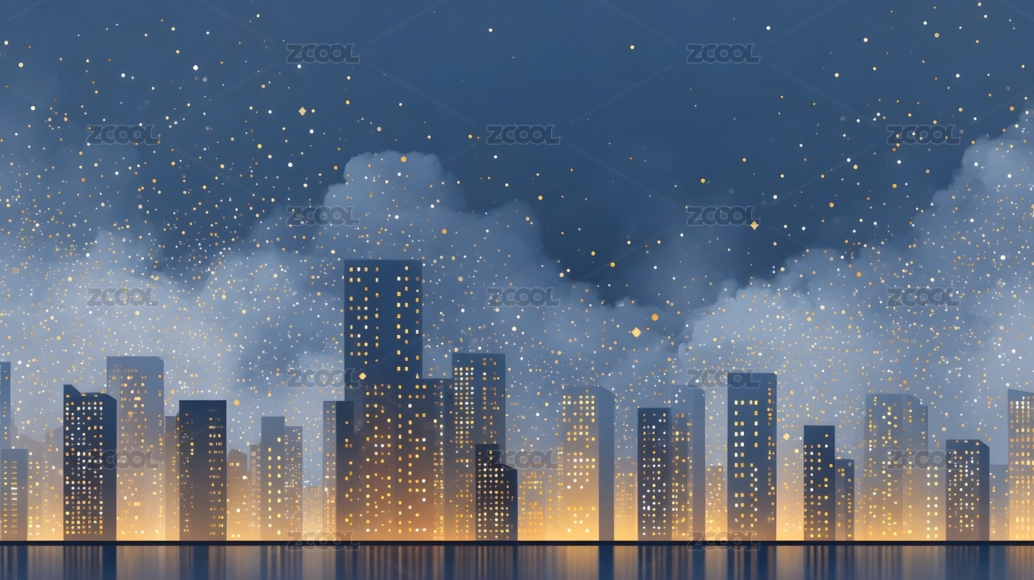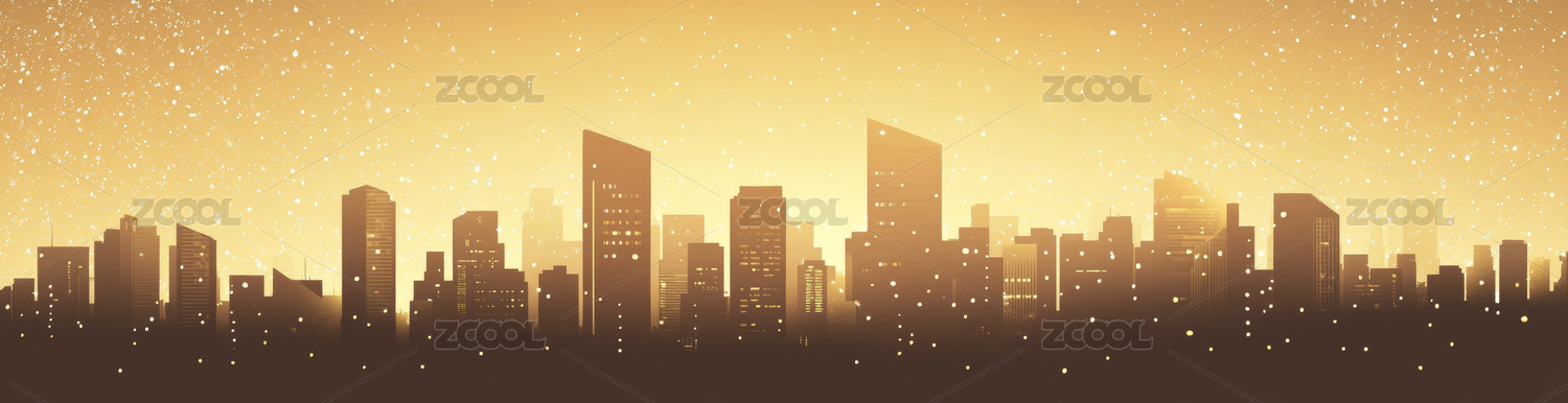夜晚城市剪影与星空