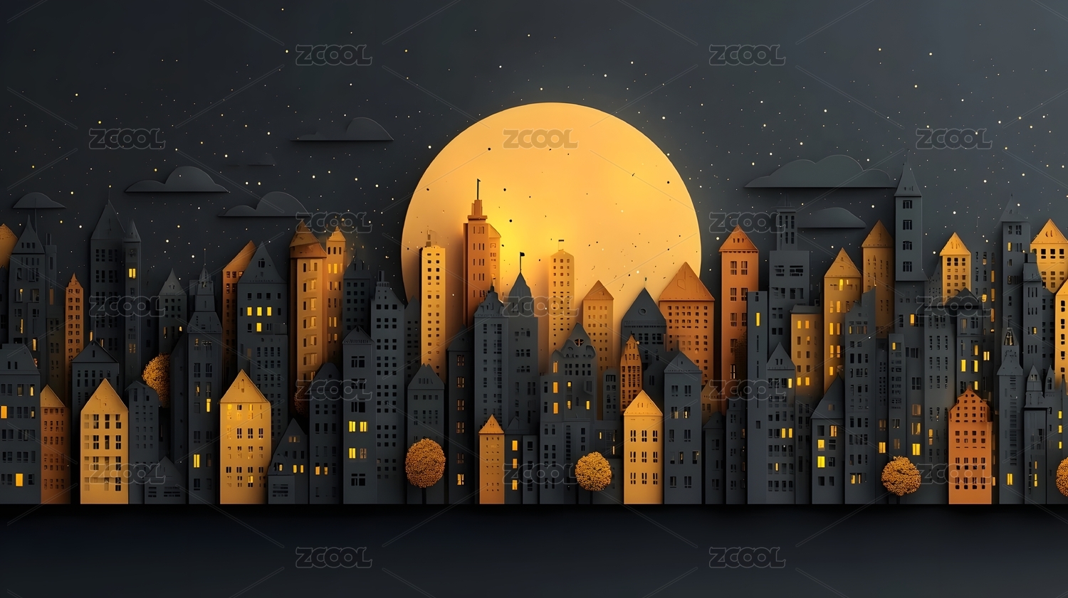剪纸风格城市夜景