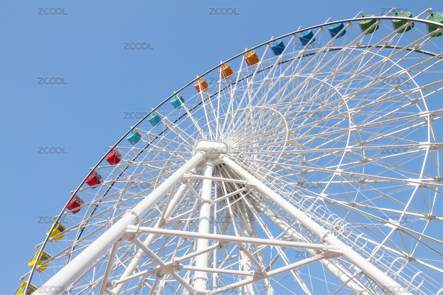 摩天轮,游乐园,仰视,金属结构,彩色座舱,户外