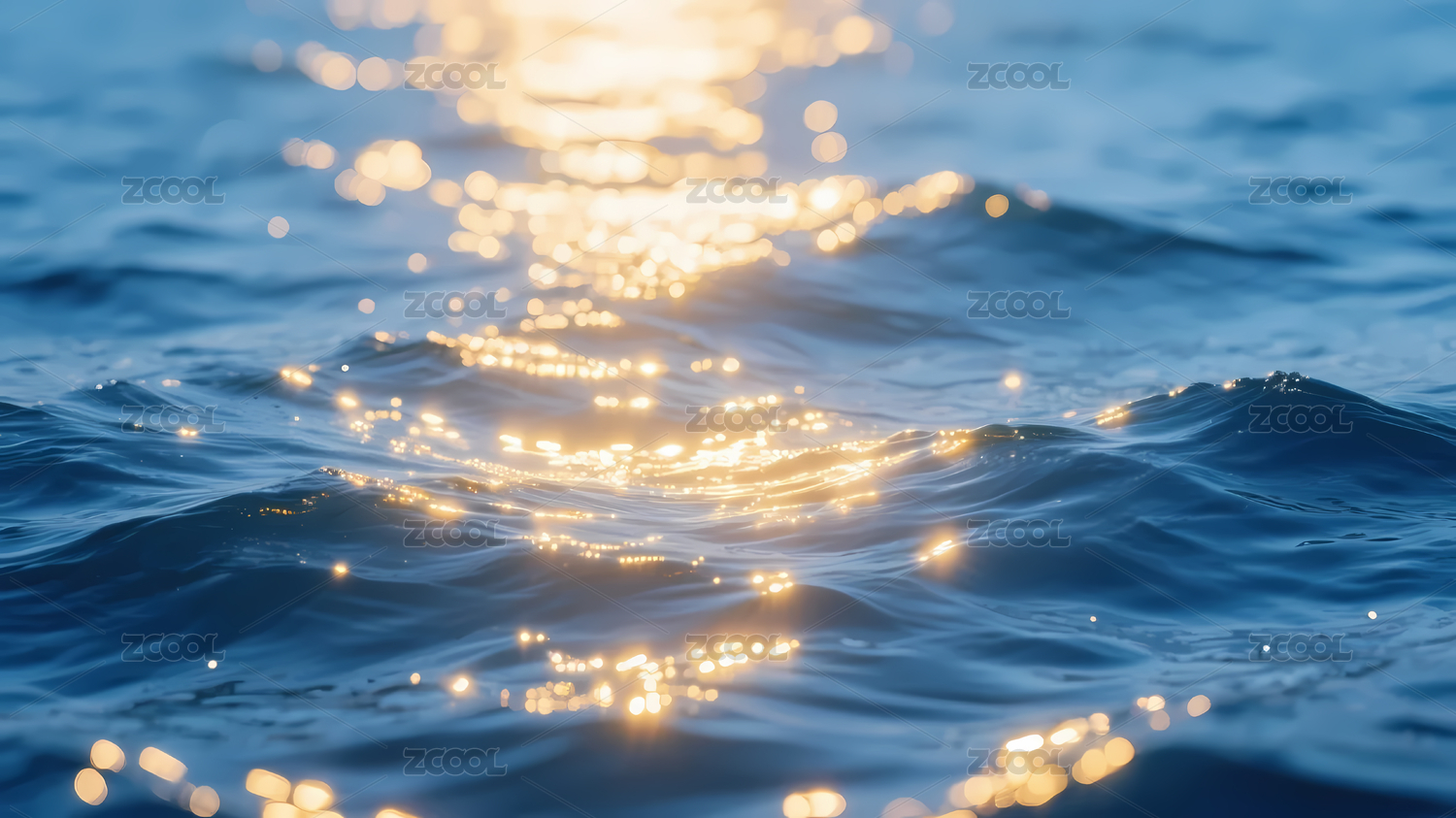 金色光斑映衬蓝色波浪