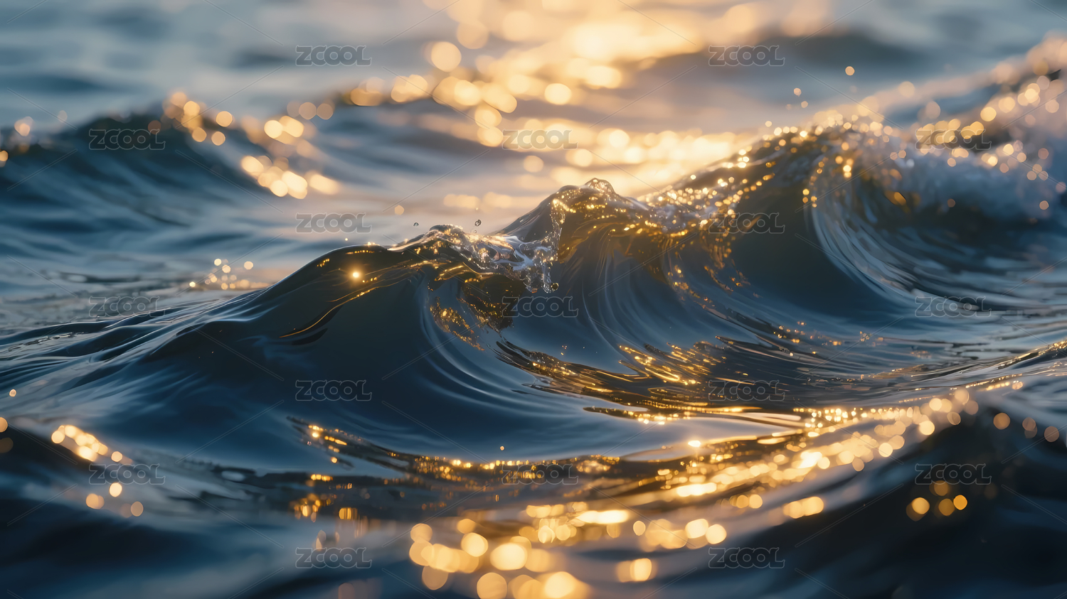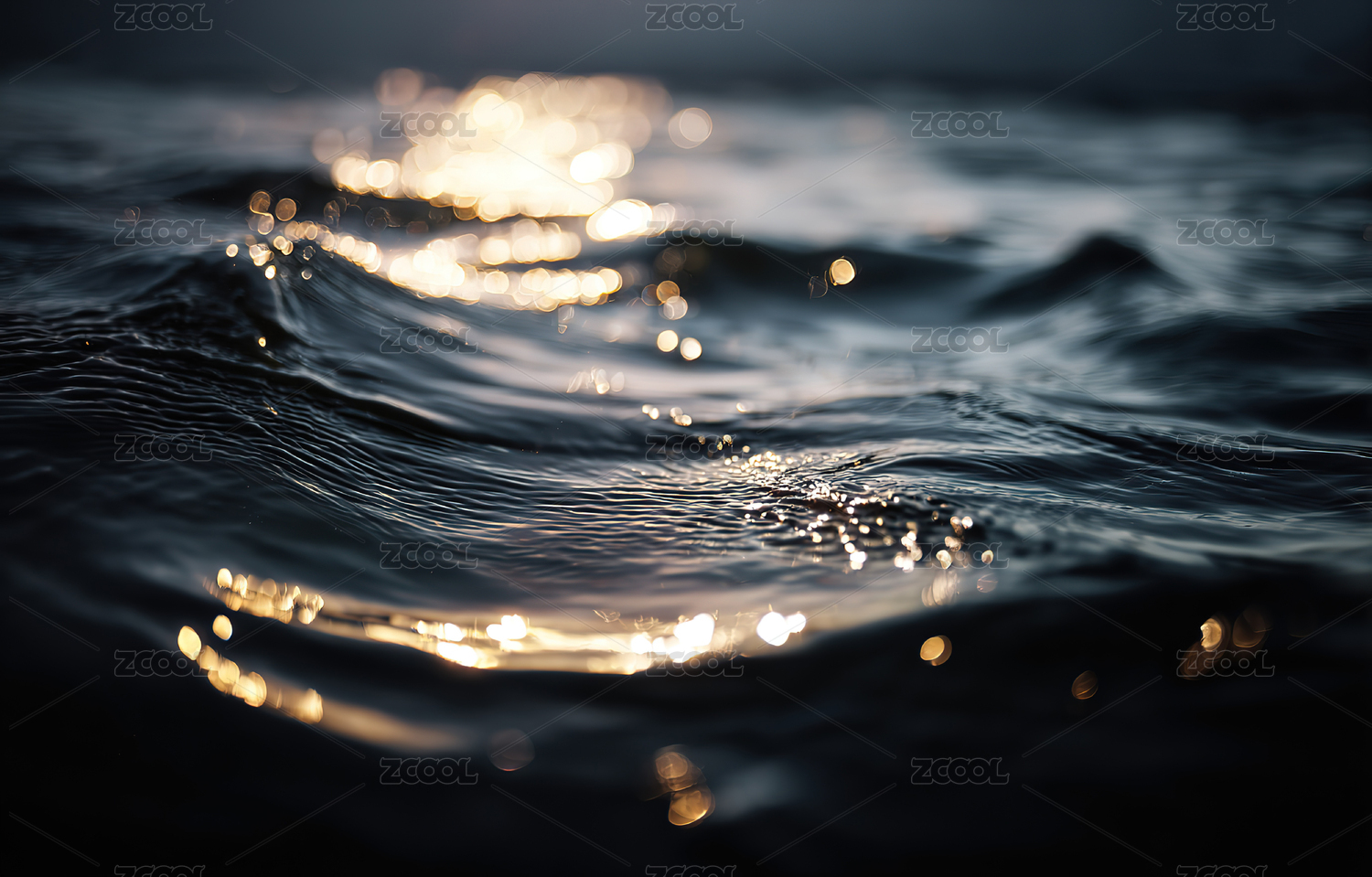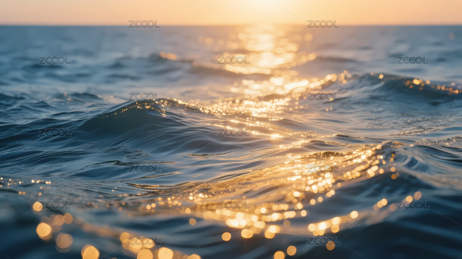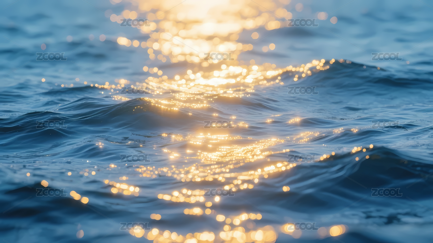 金色波光粼粼海面日落,光芒闪耀似繁星
