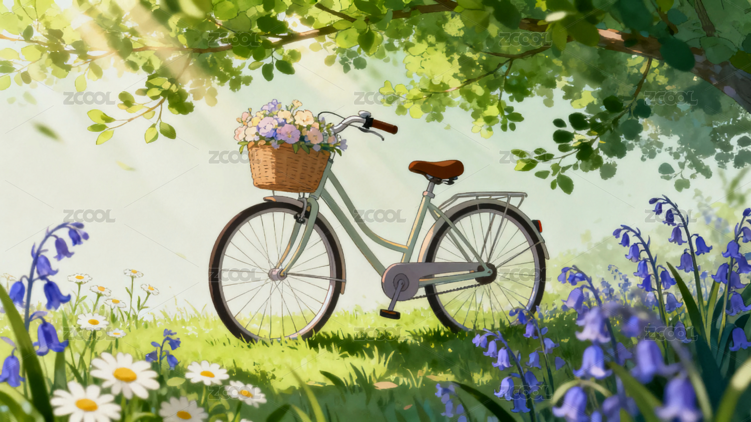 树下草地上的单车