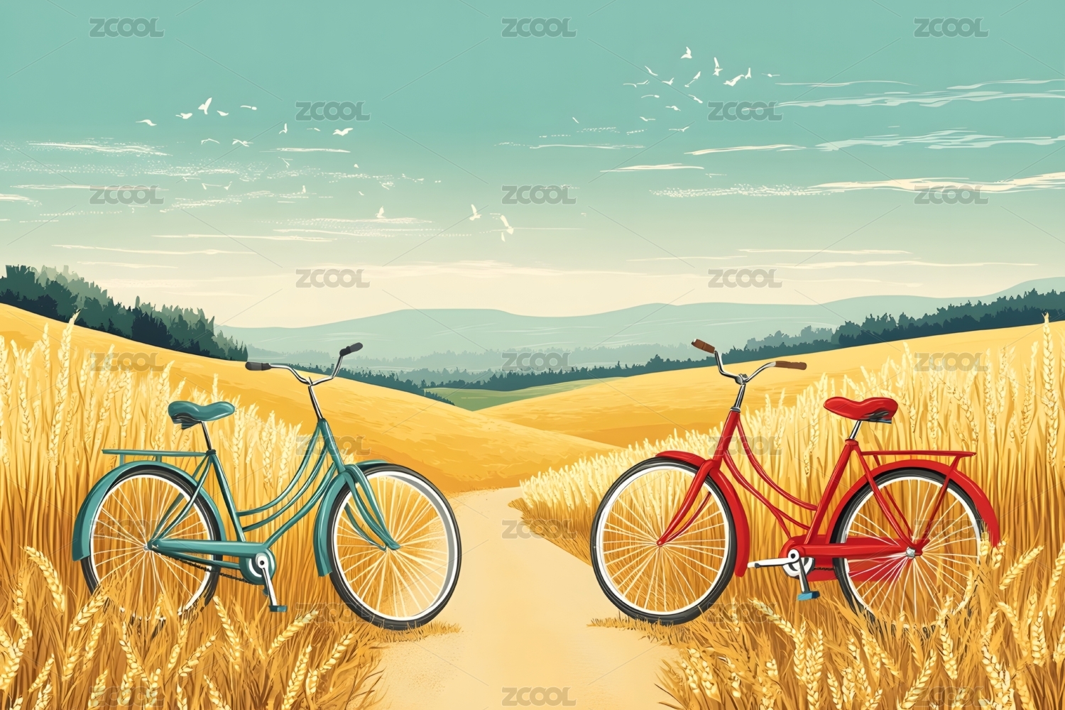 田园风景自行车图