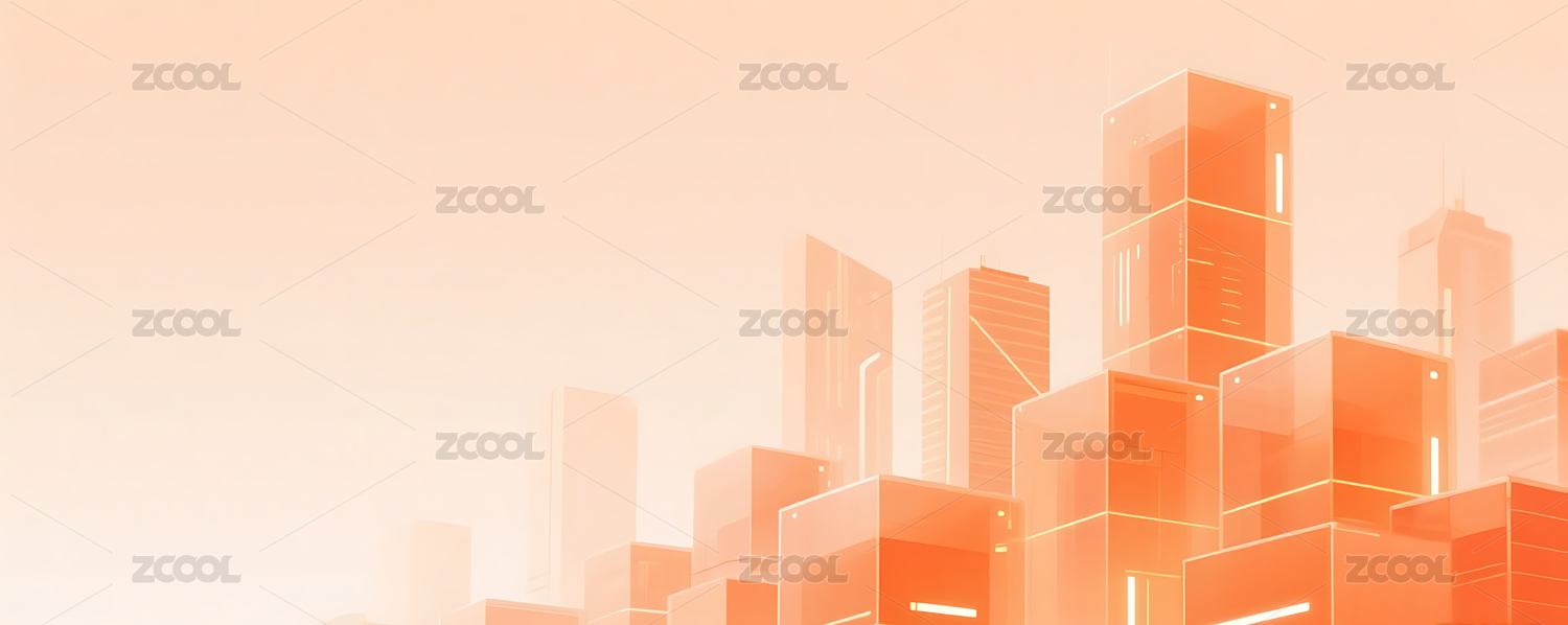 橙色透明方块几何城市建筑背景