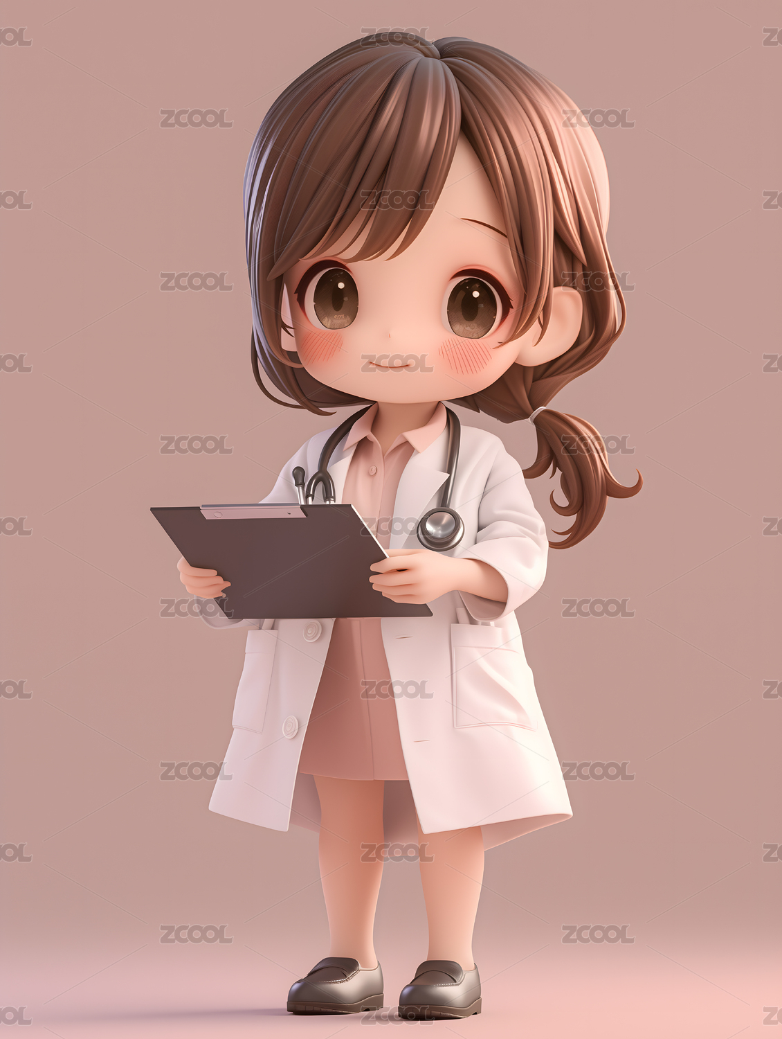 戴白帽穿医服挂听诊器Q版萌系护士3D插画