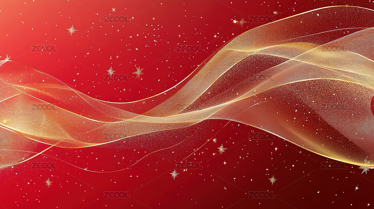 红金色丝带波浪抽象艺术背景