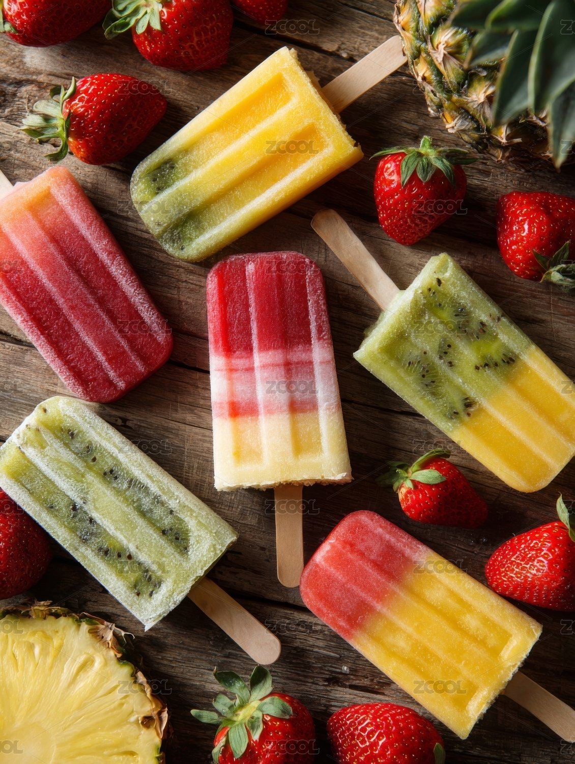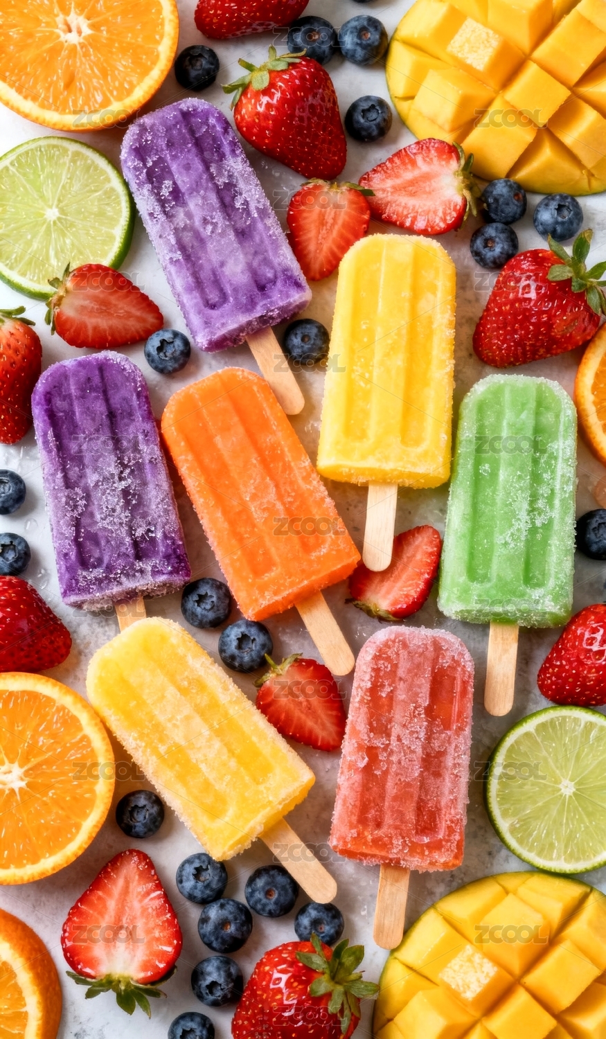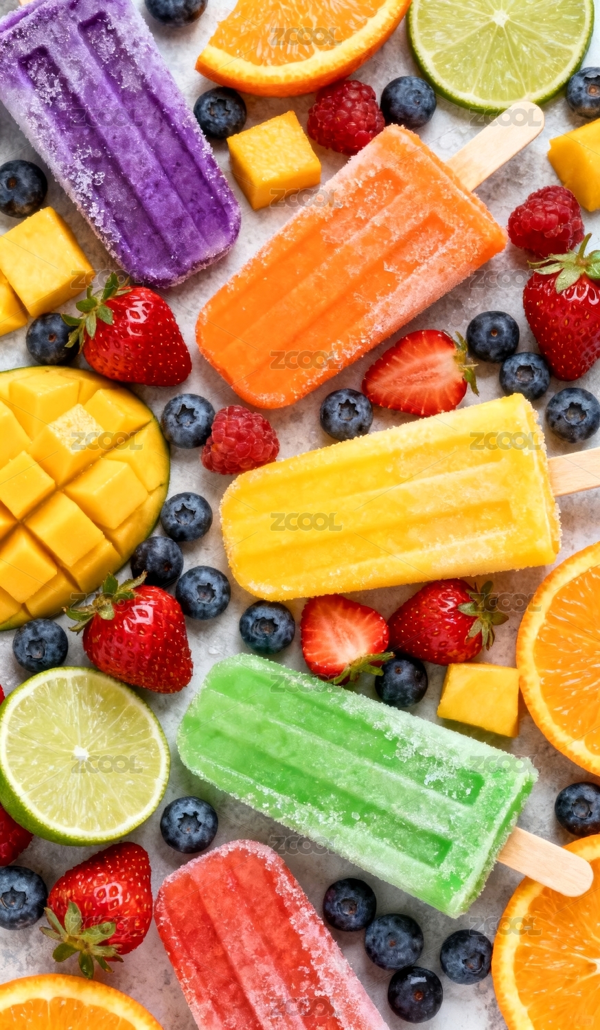 缤纷水果冰块特写粉色背景清爽夏日氛围