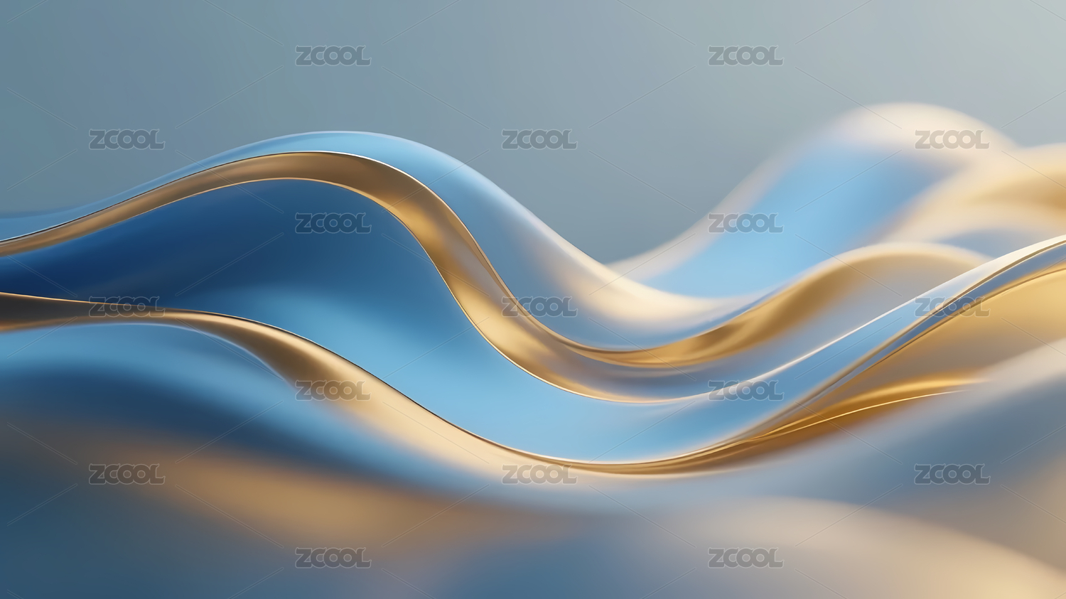 蓝金波浪曲线梦幻柔和