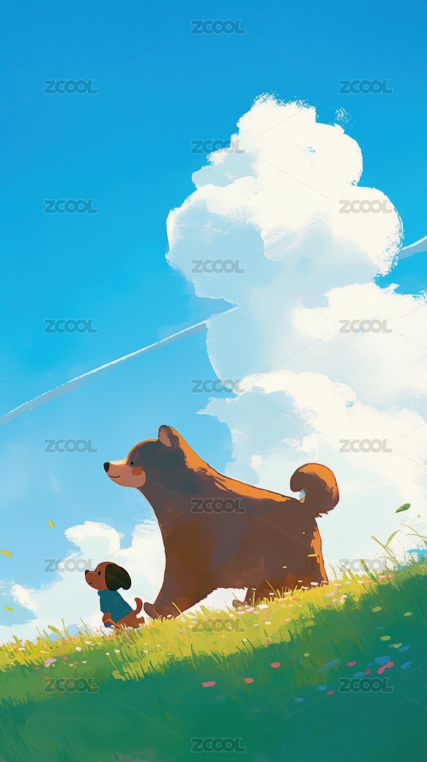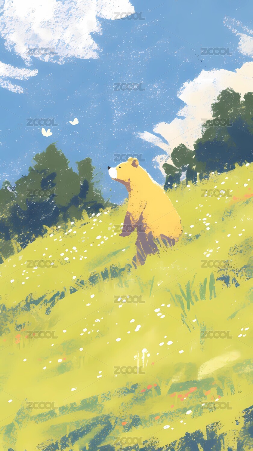 自然,插画,温馨,天空,云朵,户外,绿色,可爱,风景,草地