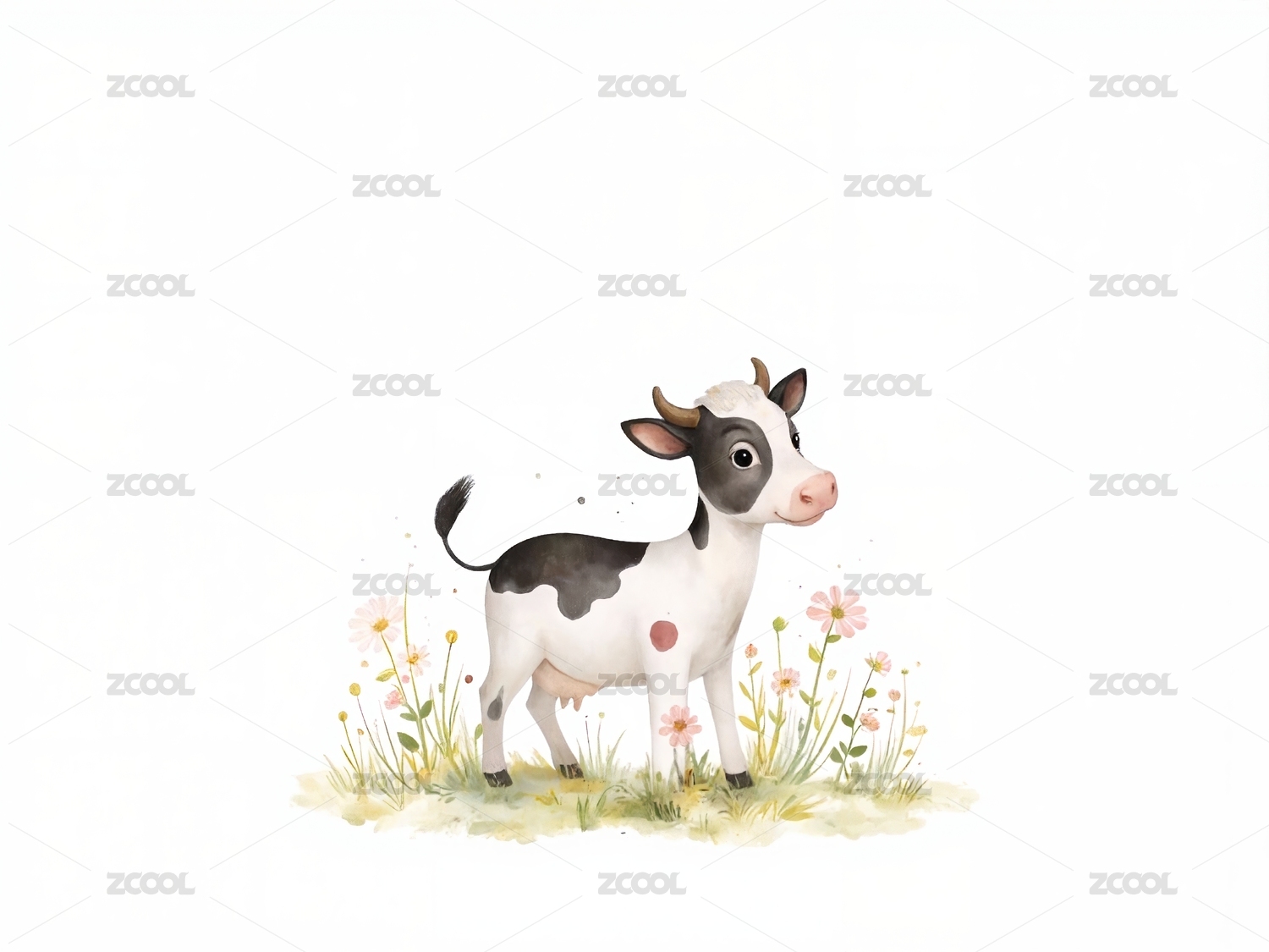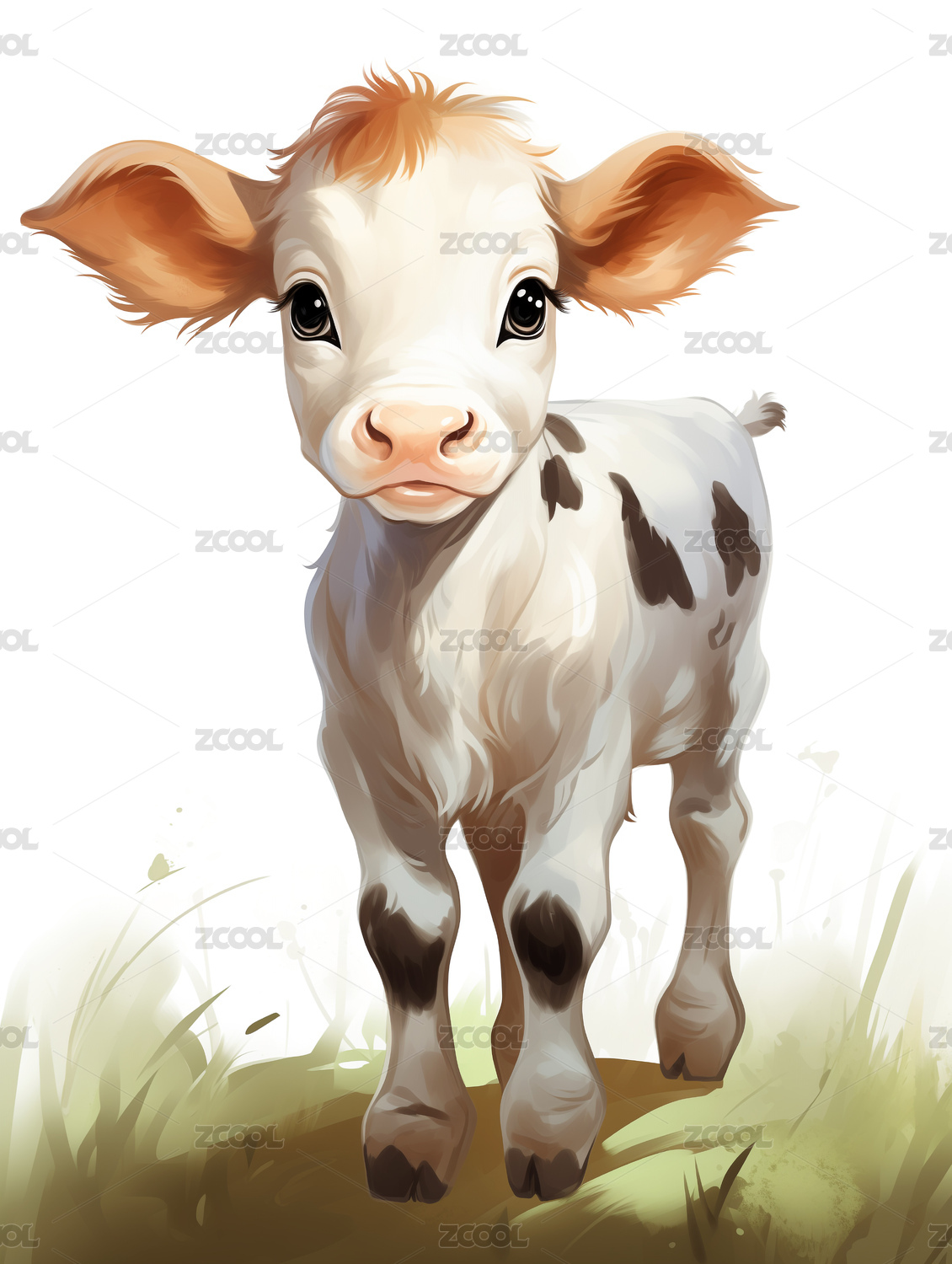 小牛,插画,可爱,白色,灰色,耳朵,眼睛,鼻子,嘴巴,腿