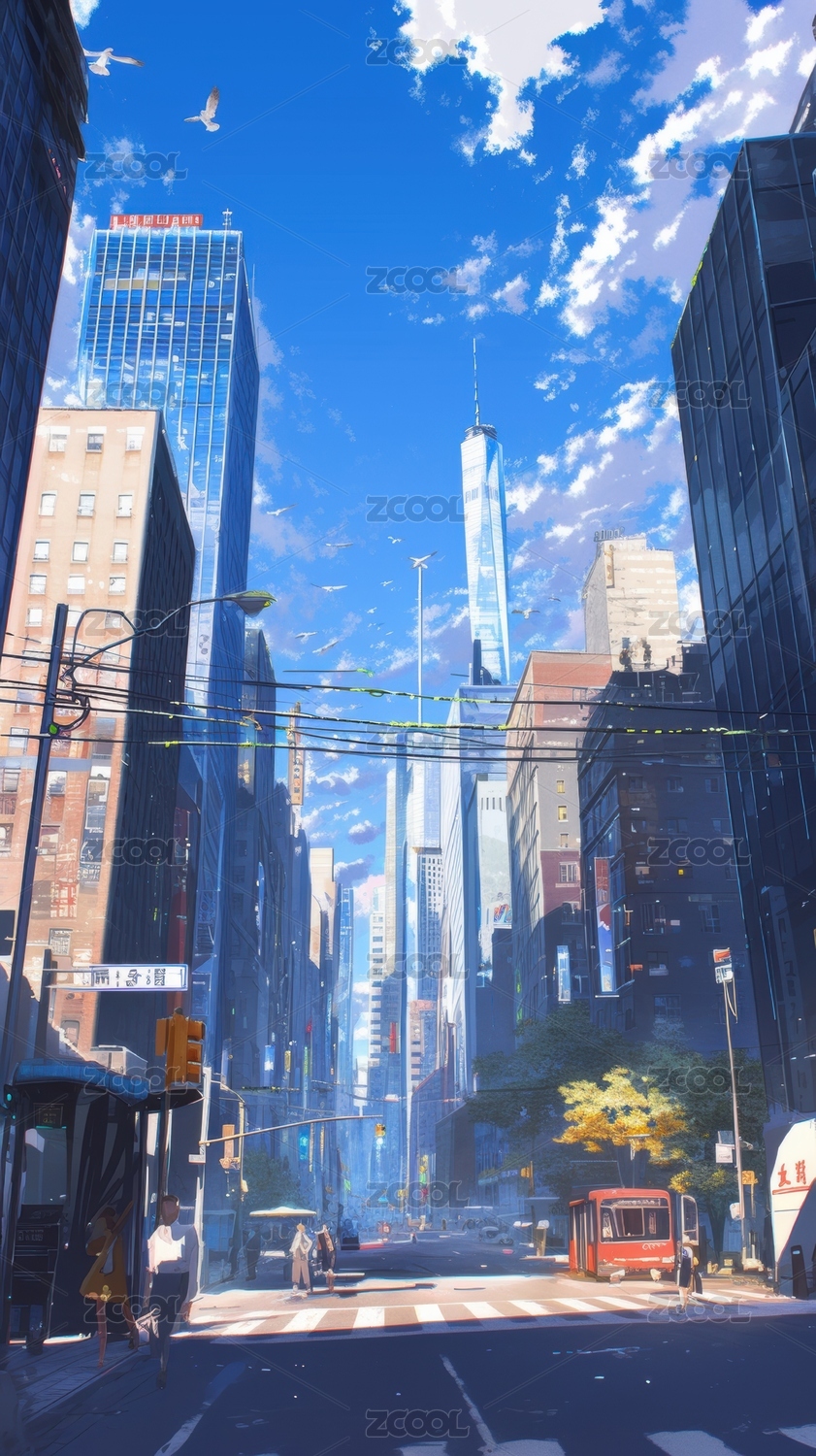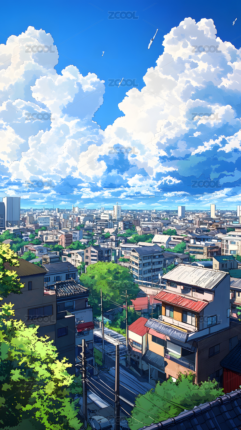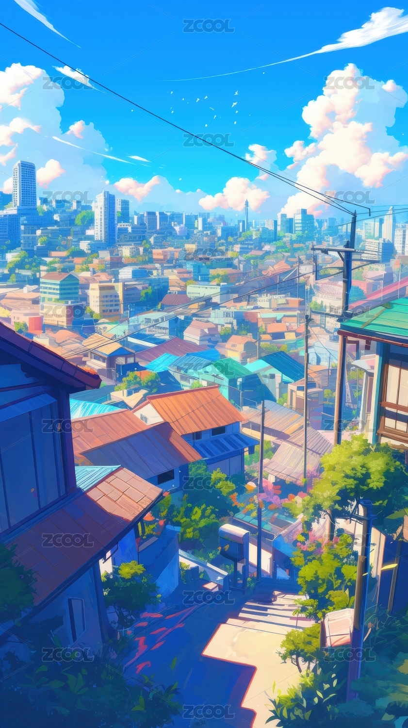 日漫城市建筑插画