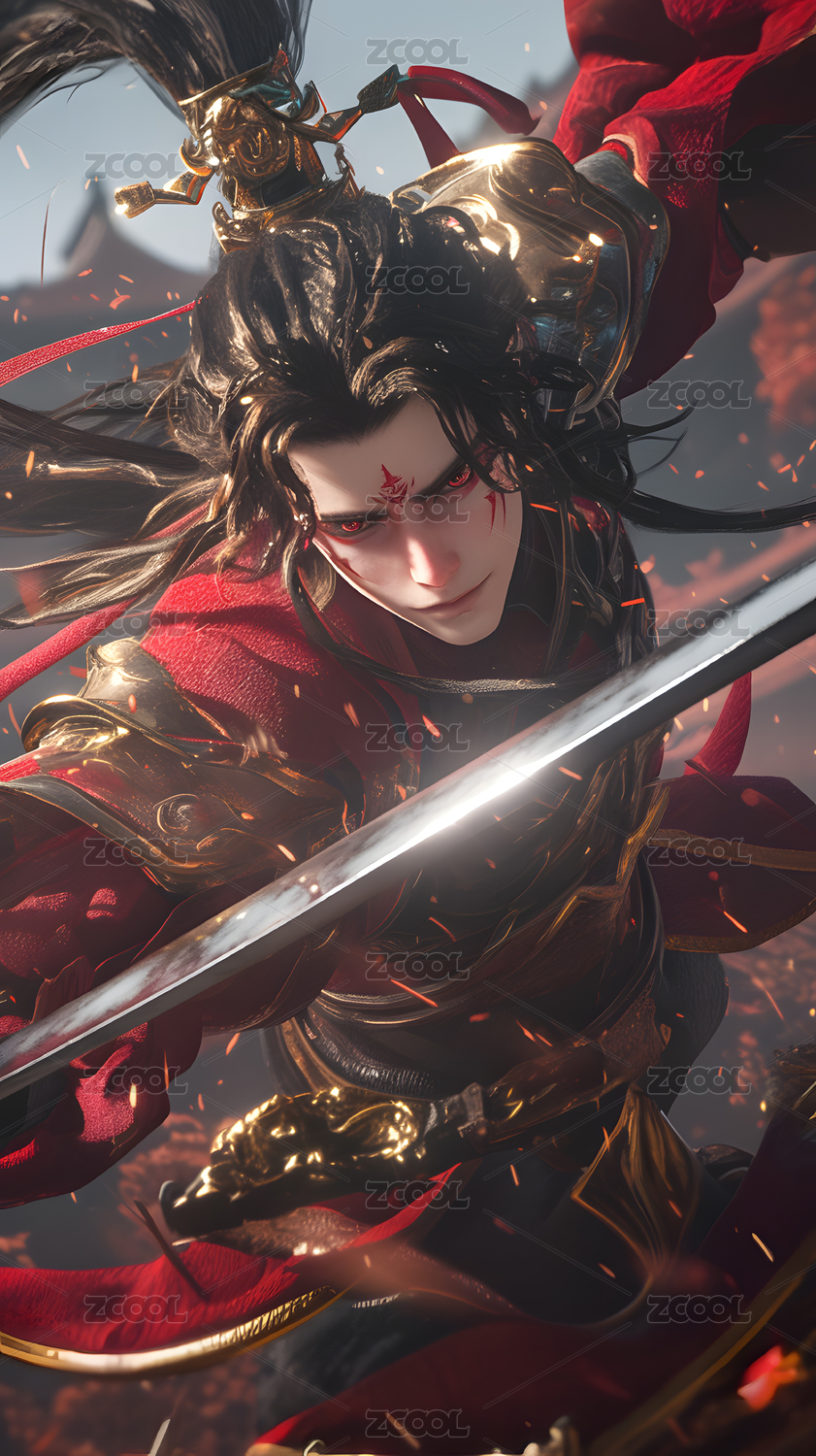 长发,光影,背景,插画,卡通,漫画,盔甲,细节,姿态,战斗