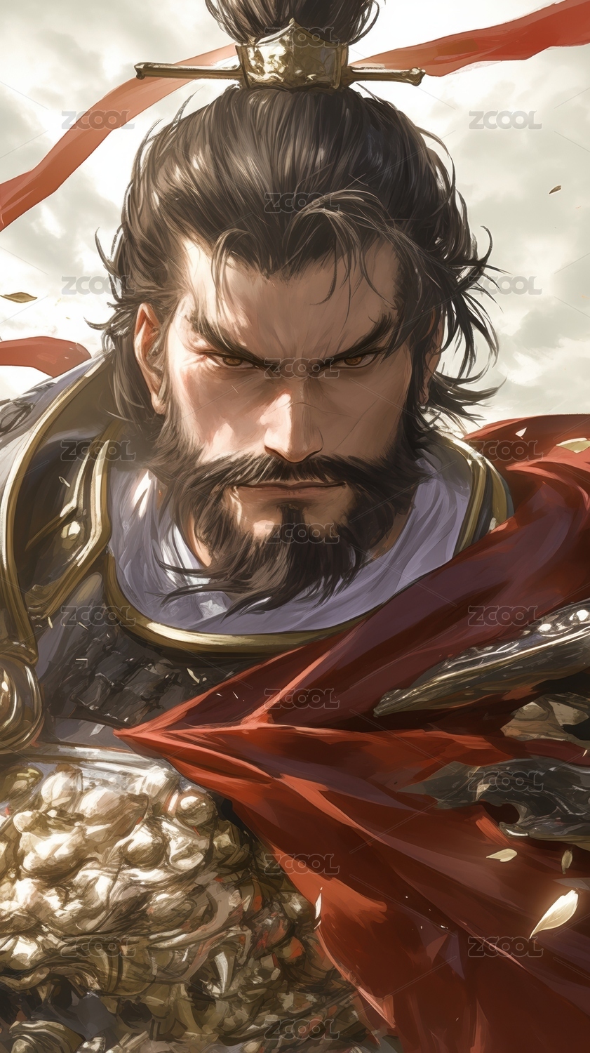 古代武将身穿铠甲神情威严