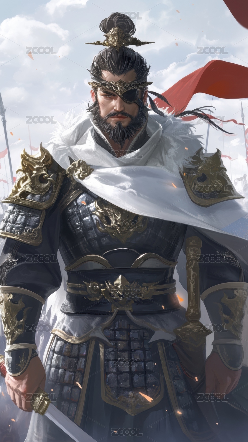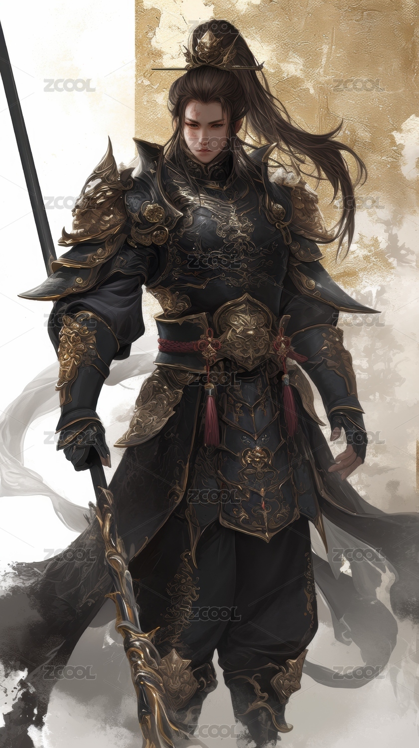 古代武将身披铠甲手持长剑