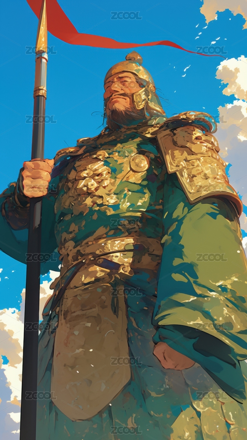 身穿铠甲的战士手持长矛