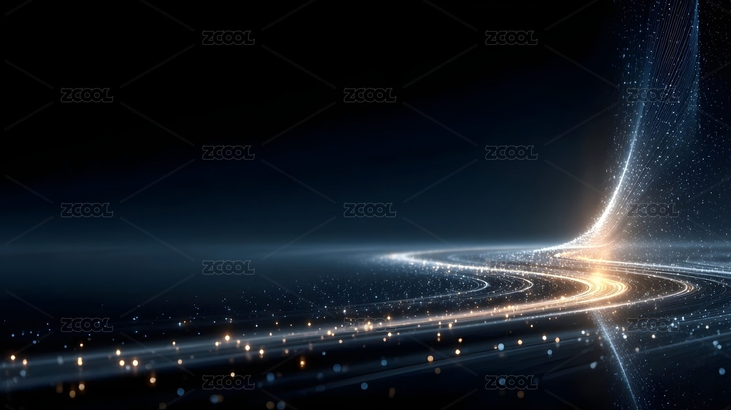 蓝色动感光带与闪烁粒子抽象图