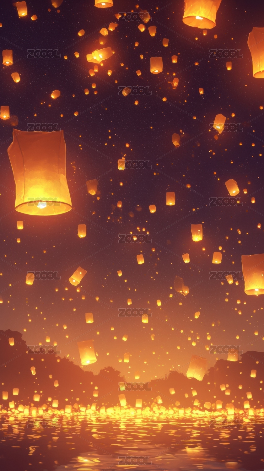 传统,文化,浪漫,梦幻,美丽,夜空,天空,孔明灯,光芒,节日