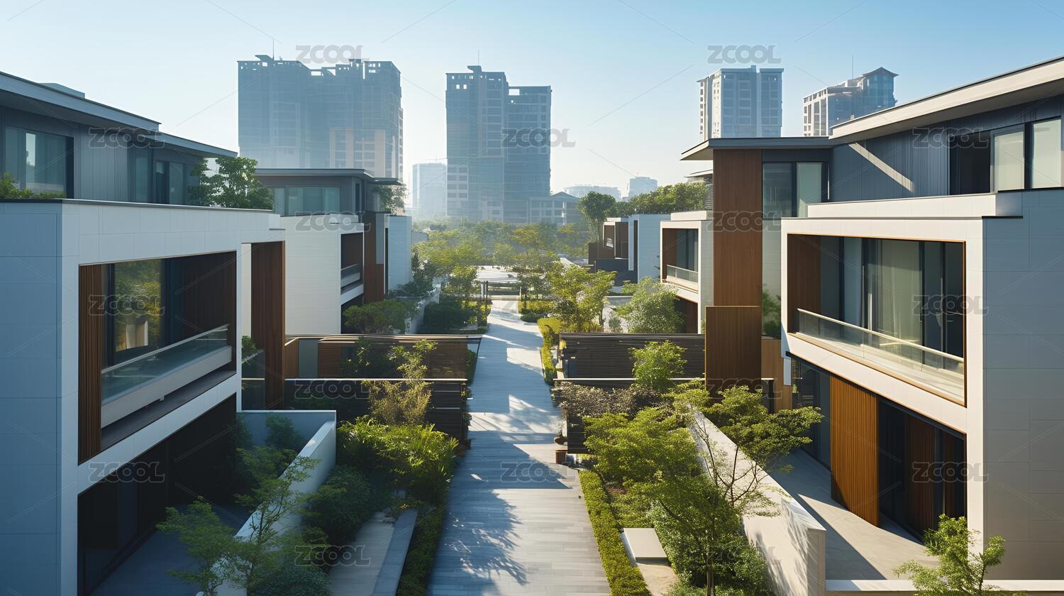 现代建筑,外墙,窗户,蓝天,绿树,建筑外观,户外,住宅建筑,城市建筑,建筑