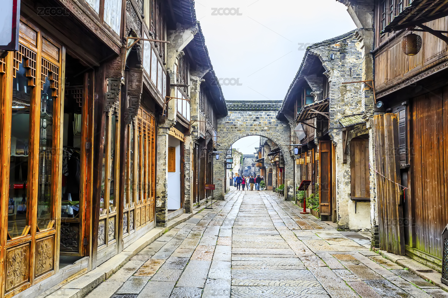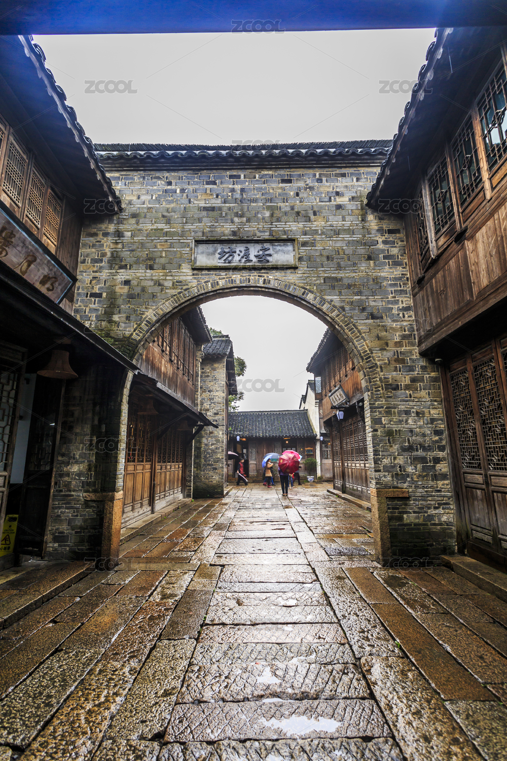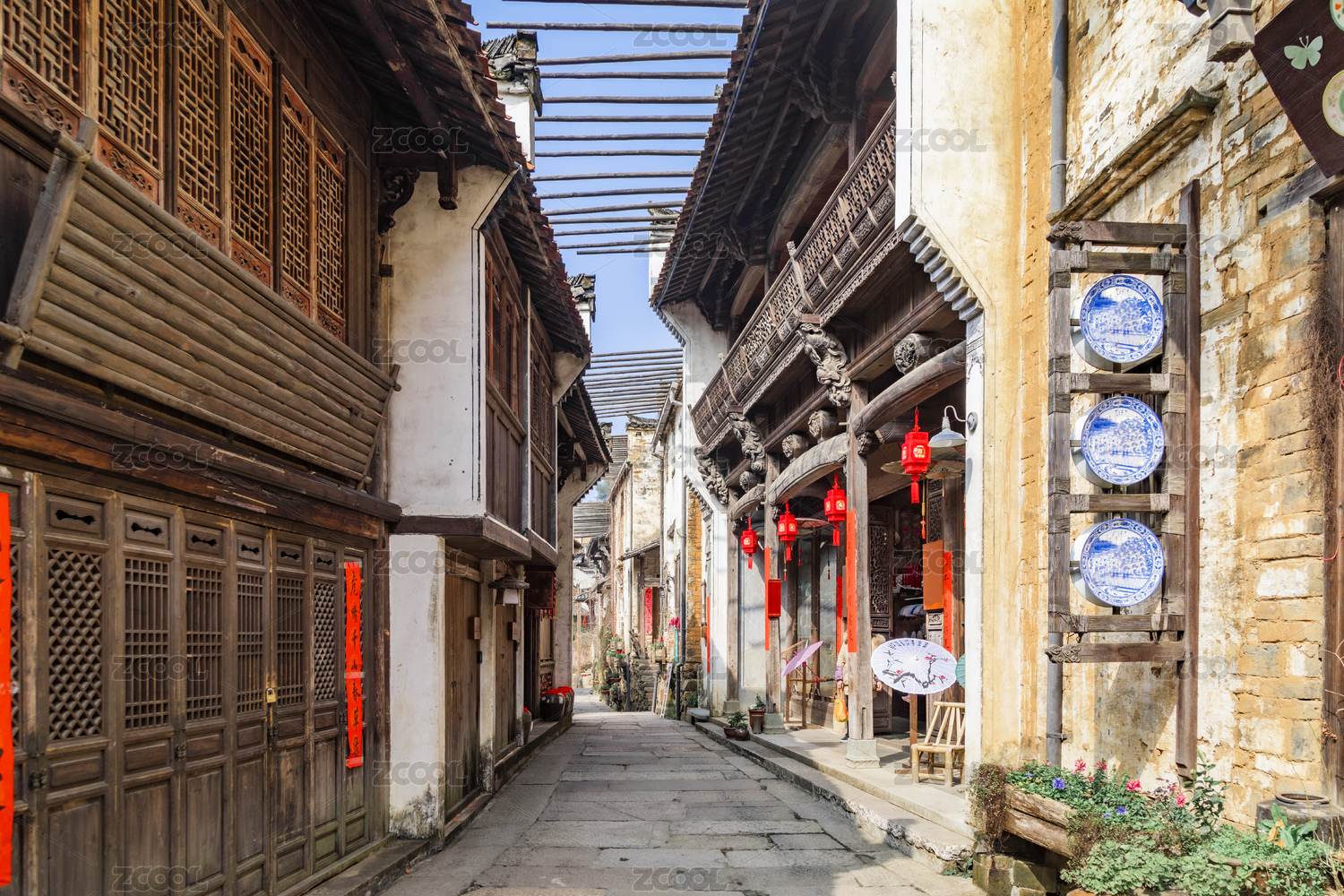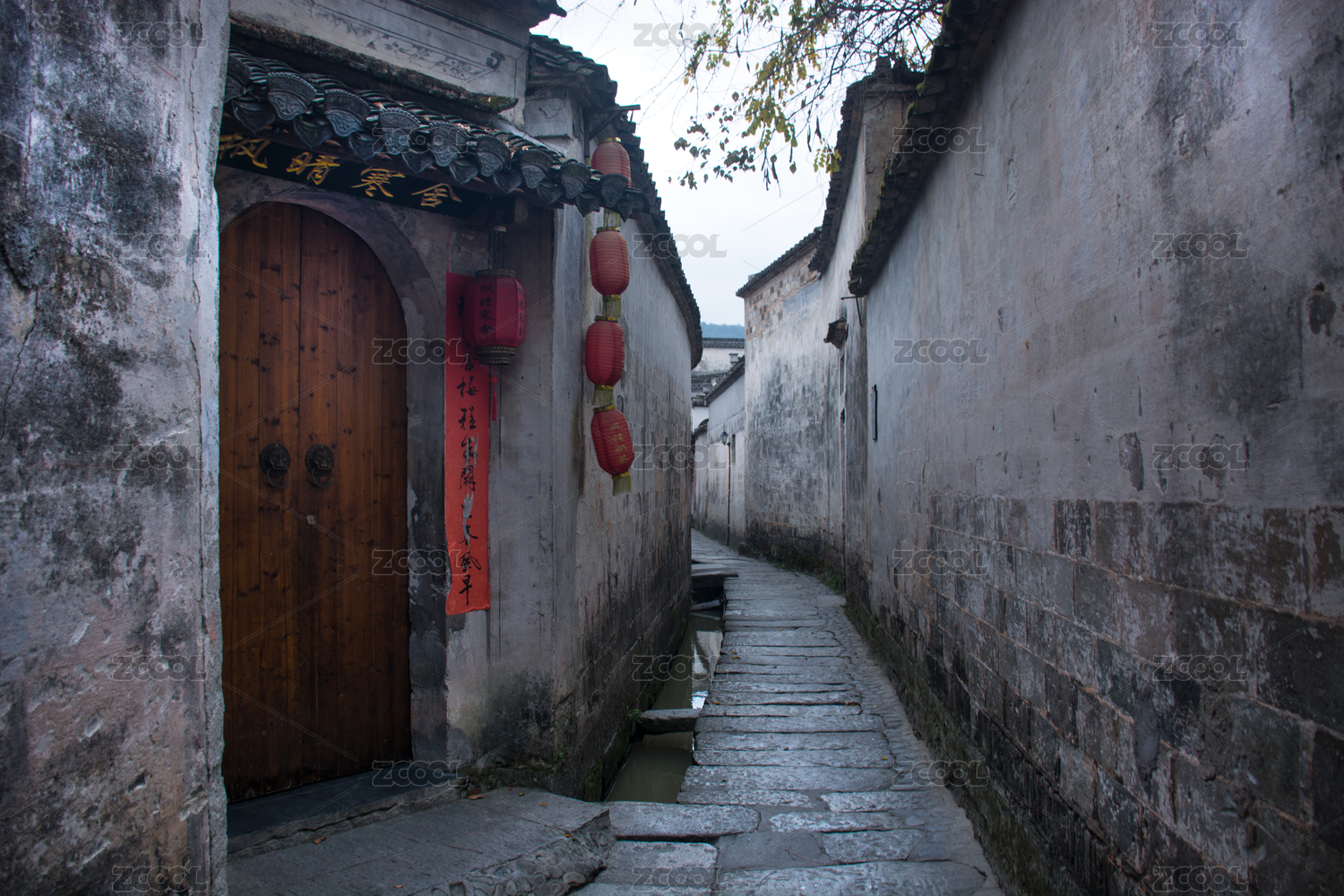 安徽黄山宏村徽派古典建筑的青石板路巷子
