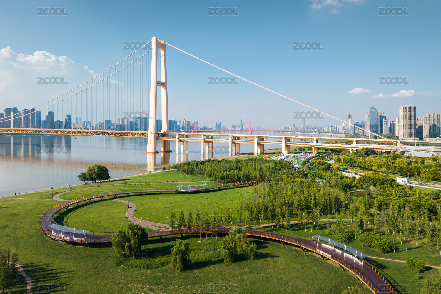夏季白天航拍武汉杨泗港长江大桥建筑风光