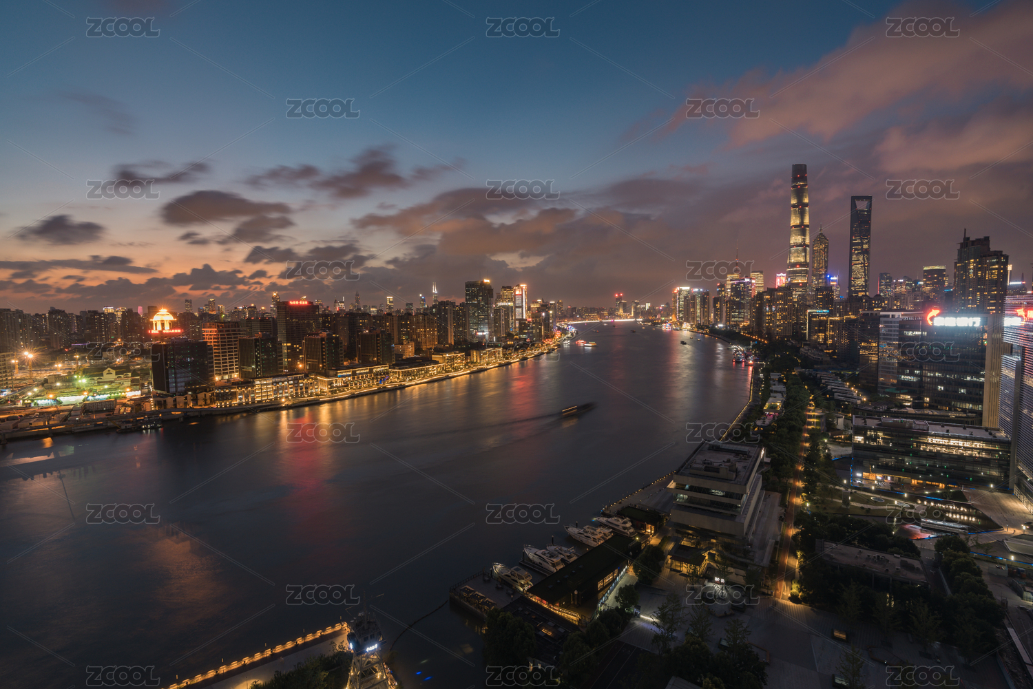 上海外滩天际线落日美景,上海浦东新区陆家嘴夜景