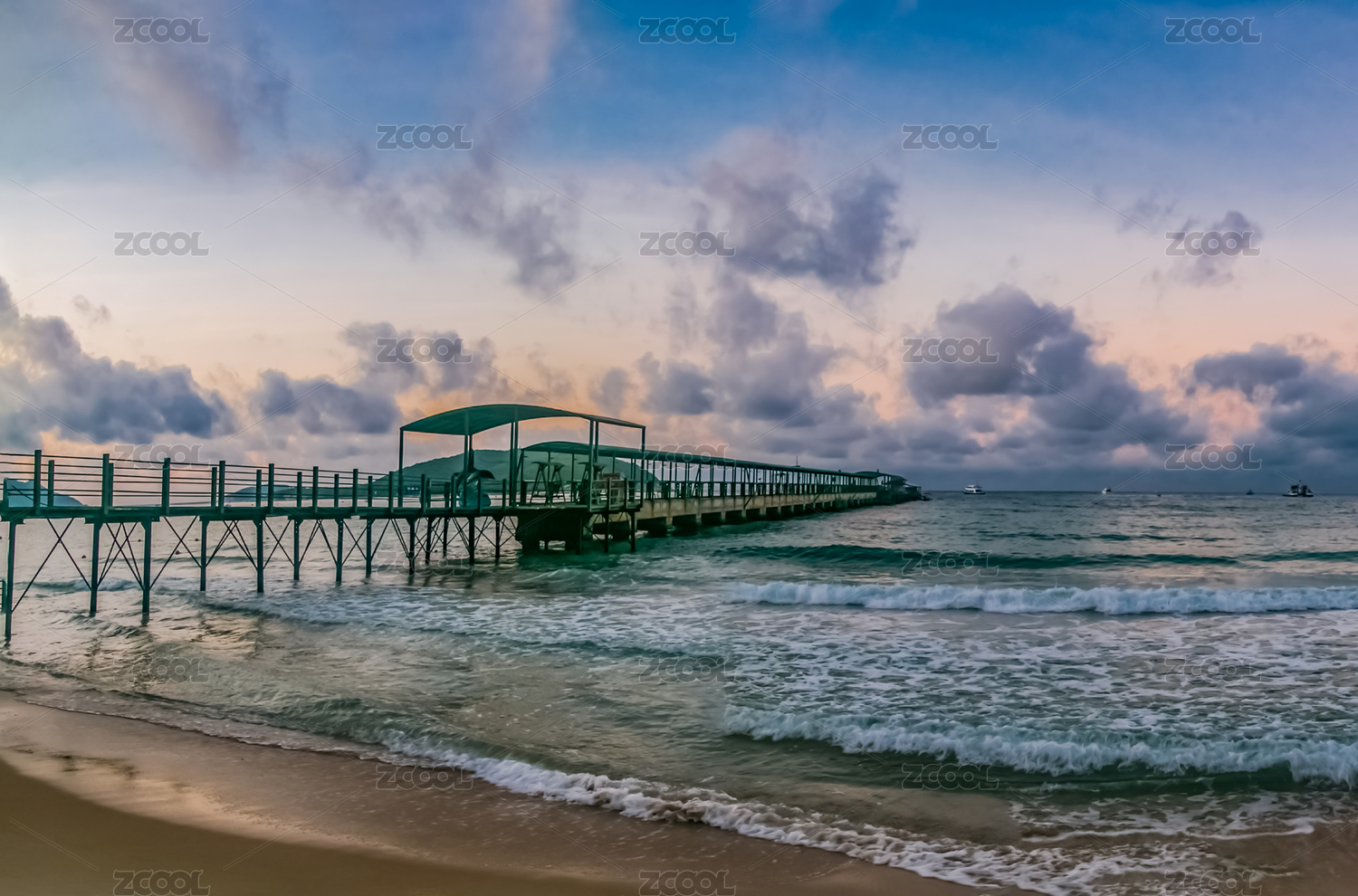 海南三亚湾海边的栈桥风光
