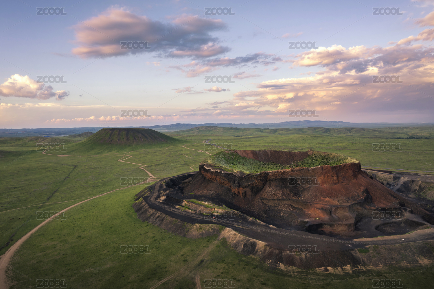 中国内蒙察哈尔火山群六号已开采的火山