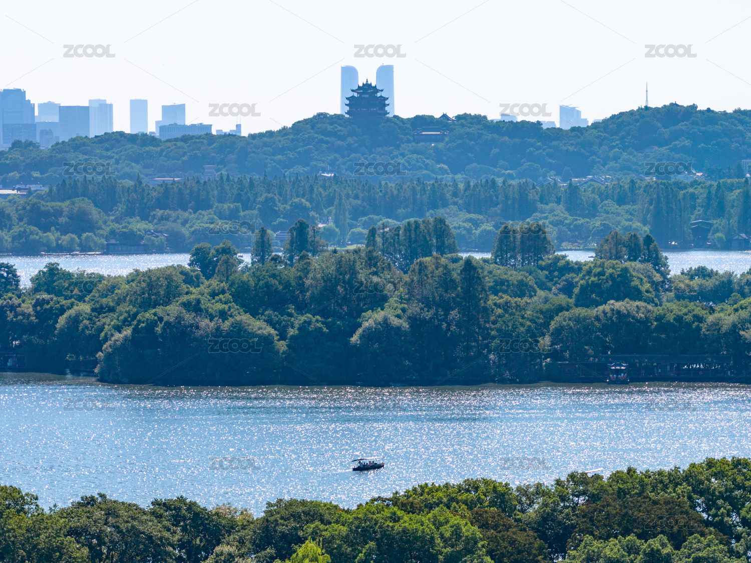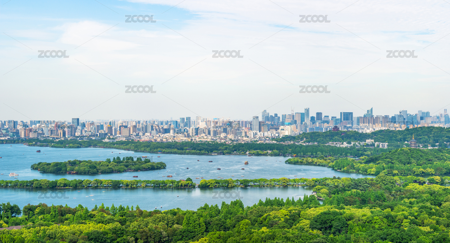 杭州西湖全景与城市天际线