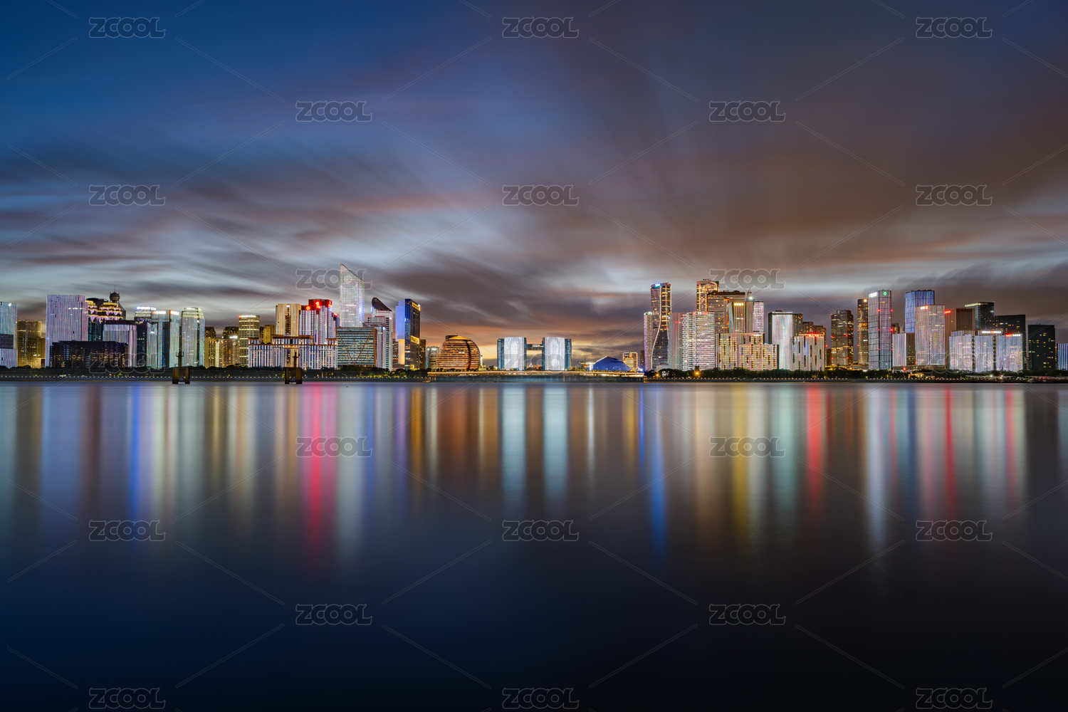 浙江,夜景,旅游目的地,杭州,CBD,火烧云,城市天际线,杭州之门,奥体,钱塘江