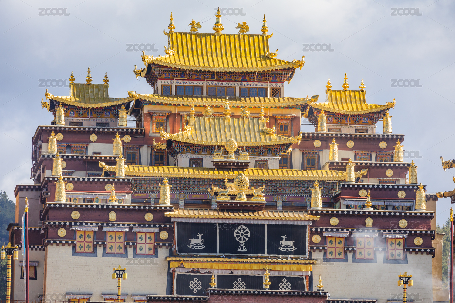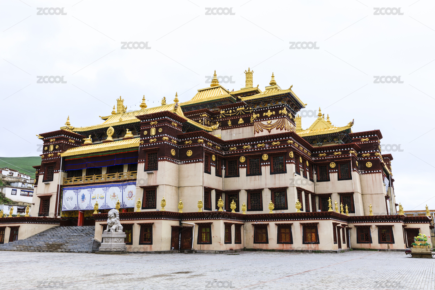 藏式寺庙建筑正面-四川稻城县寺庙著杰寺