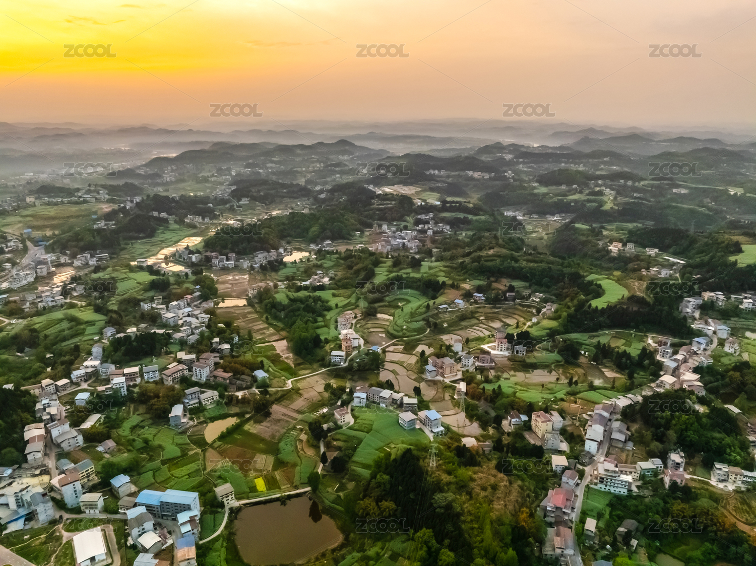 夕阳下四川德阳苍山镇丘陵地区的乡村农田