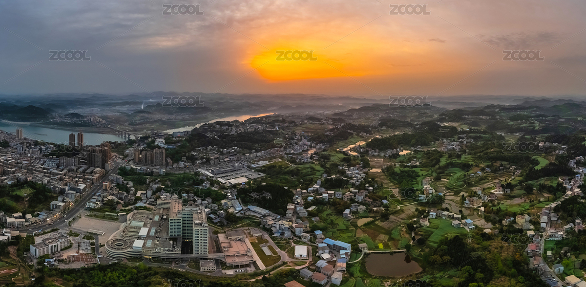 中国四川省南部县暮色朝阳城区高楼大厦建筑