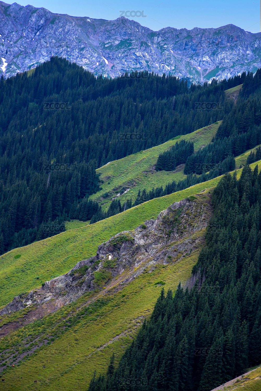 中国新疆伊犁昭苏夏塔古道草原森林自然风光