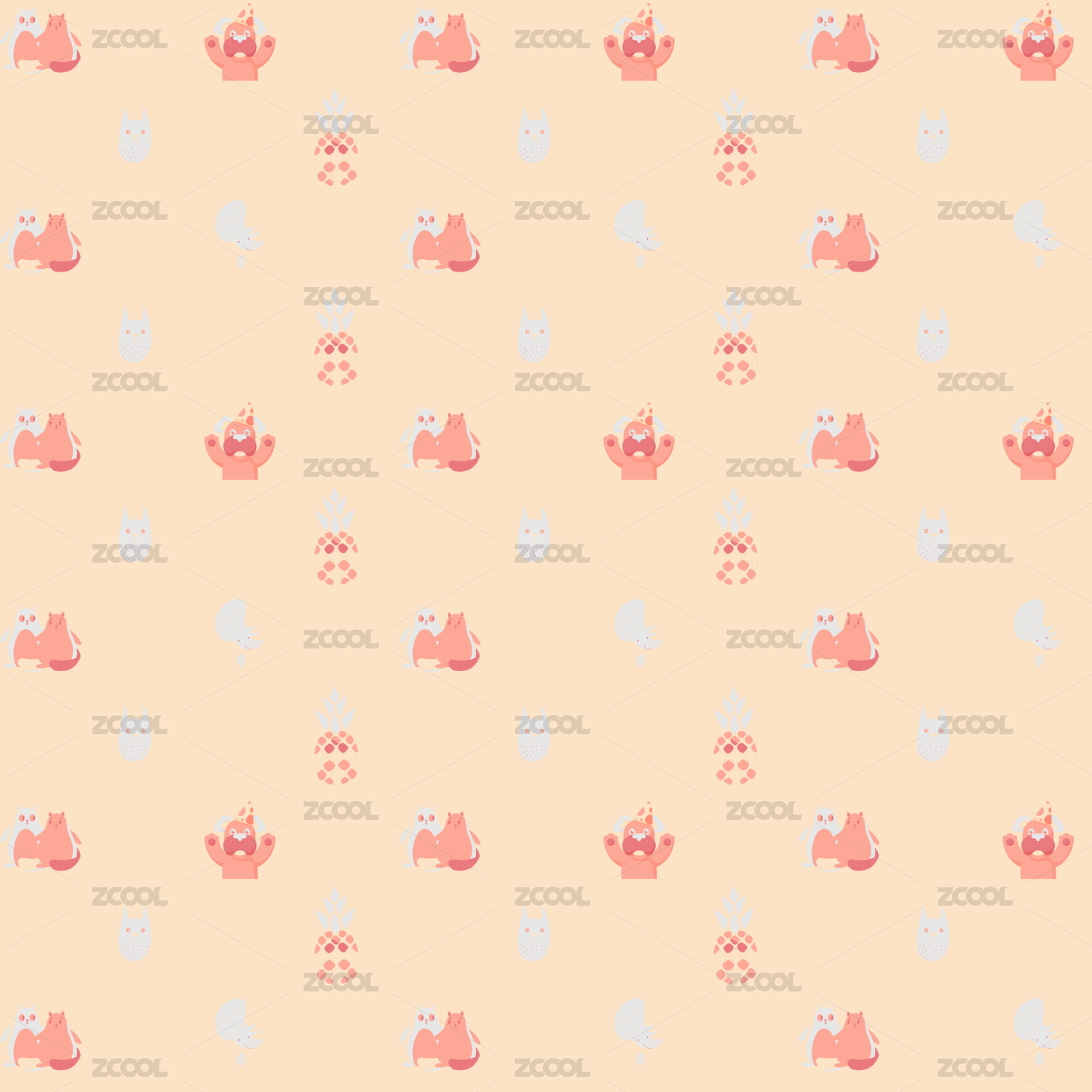 卡通动物无缝插画