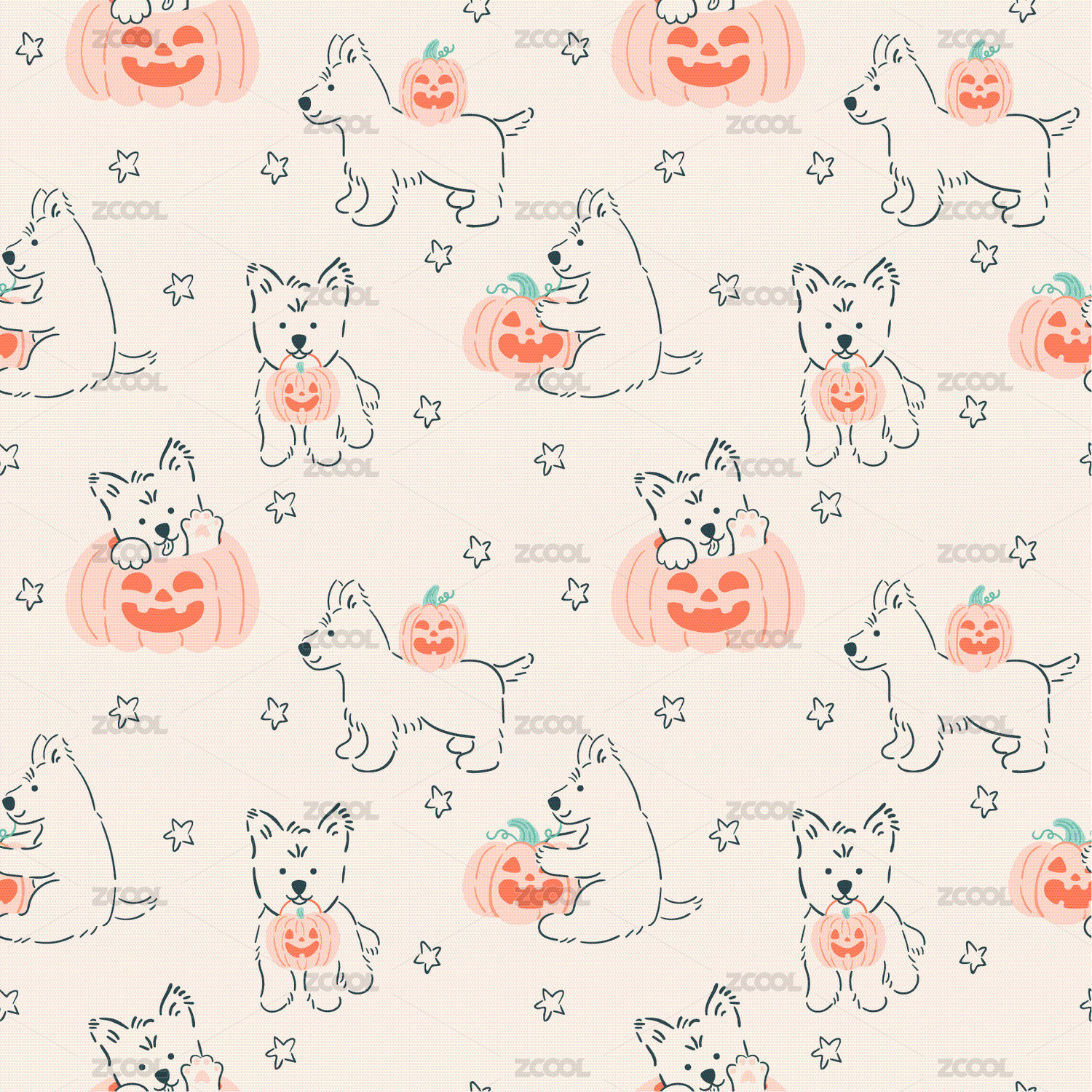 万圣节南瓜小狗矢量扁平风四方连续图案
