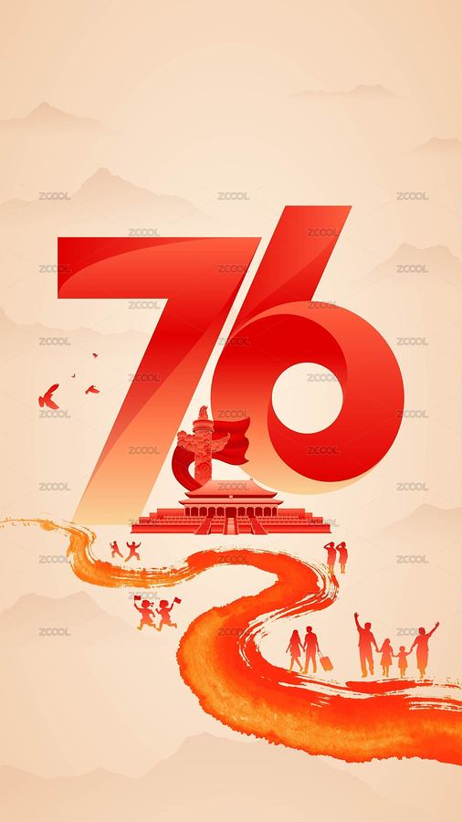 国庆节,促销,活动,祝福,旅游,国庆,76周年,展板,笔触,水墨