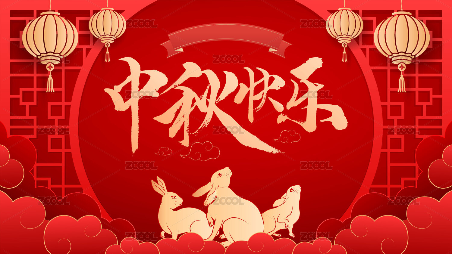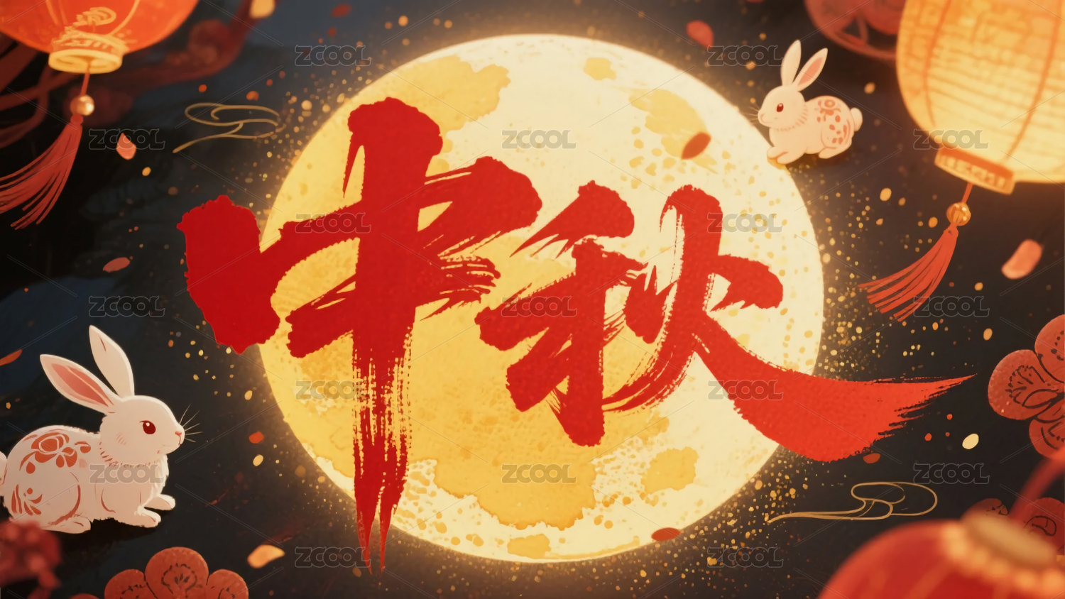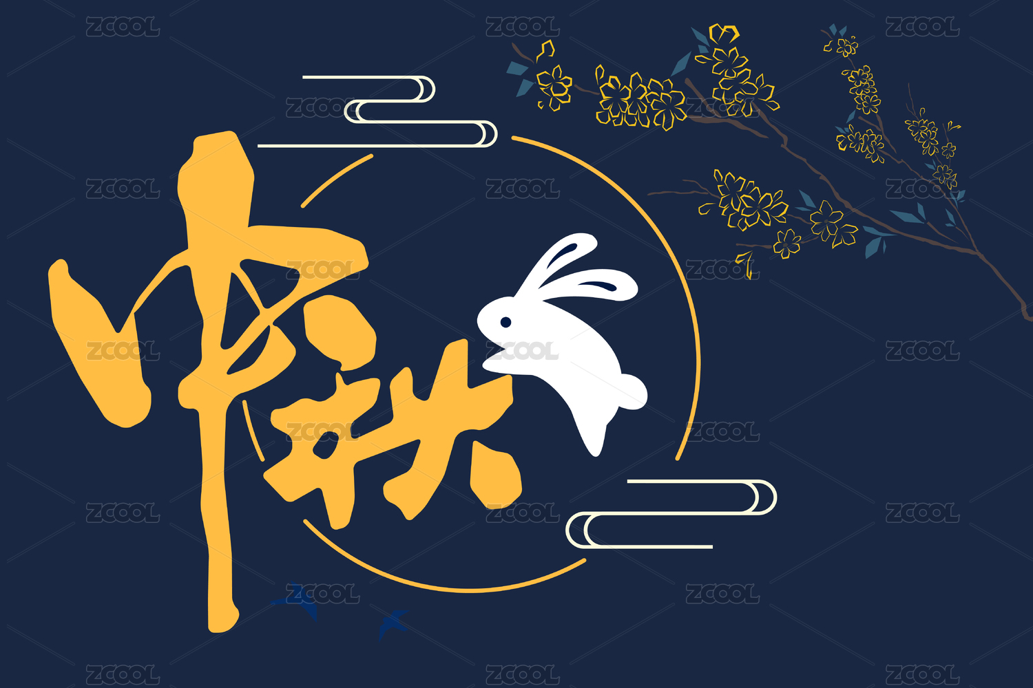 中秋节快乐月亮兔子矢量海报素材中秋手写字体