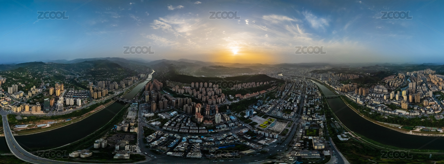 中国四川省巴中市720度全景巴河外滩高楼