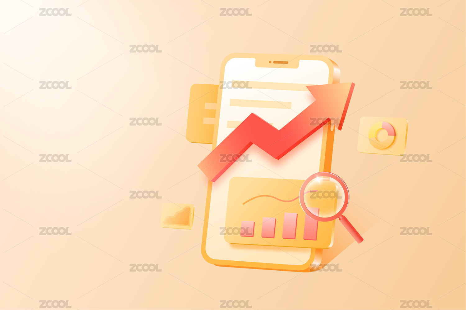 3D,金融理财,上涨箭头,文件夹,饼图,饼状图,放大镜,柱状图,搜索,数据增长