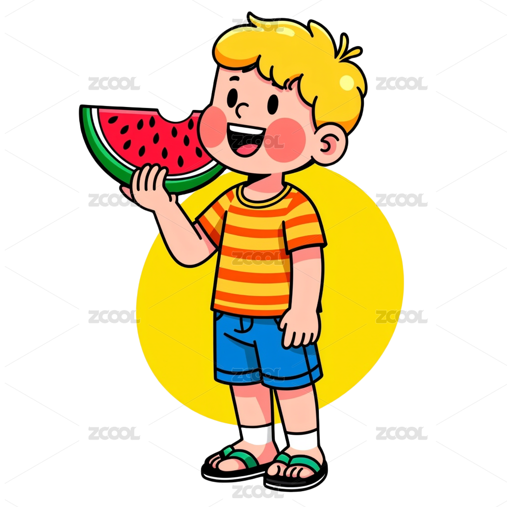 卡通,儿童,小男孩,冰淇淋,冷饮,冰棍,蓝色上衣,短裤,开心,快乐