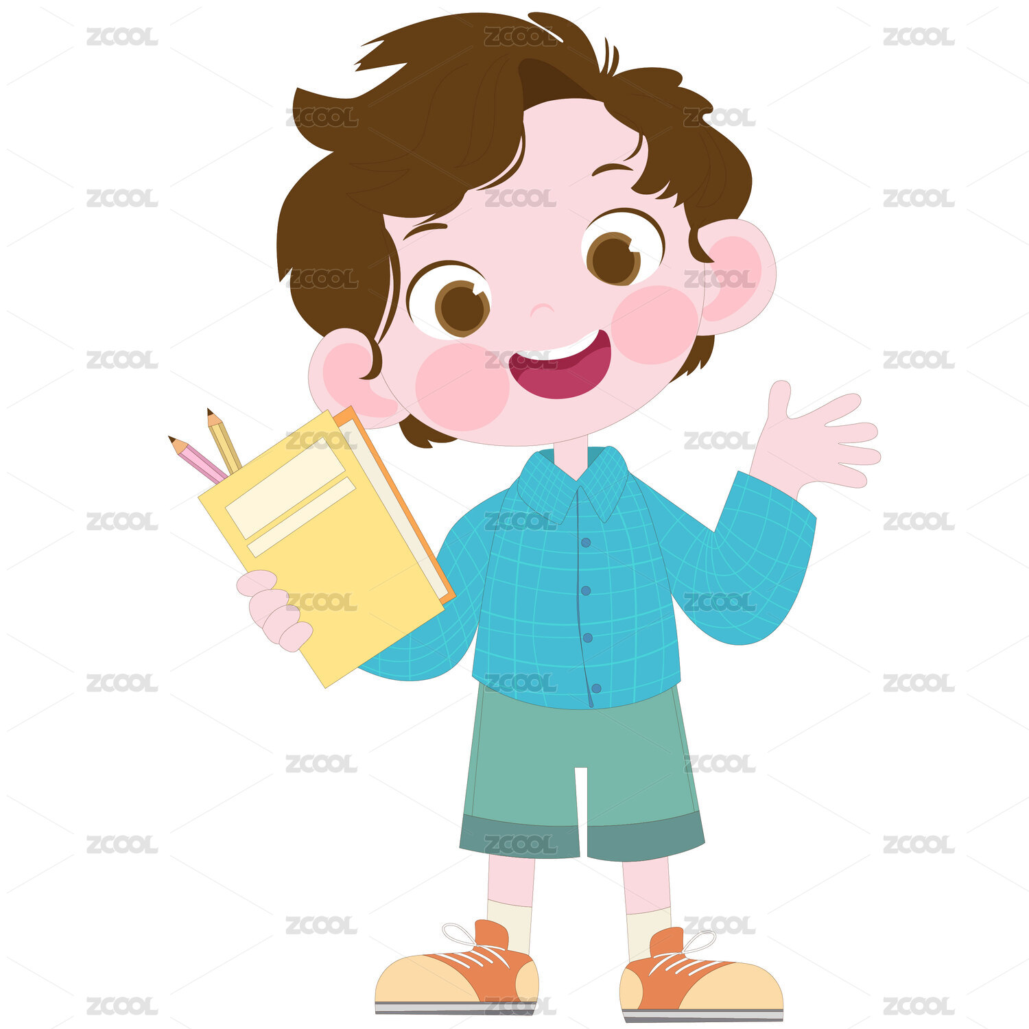 卡通风开学季儿童拿着书籍去上学的男孩插画