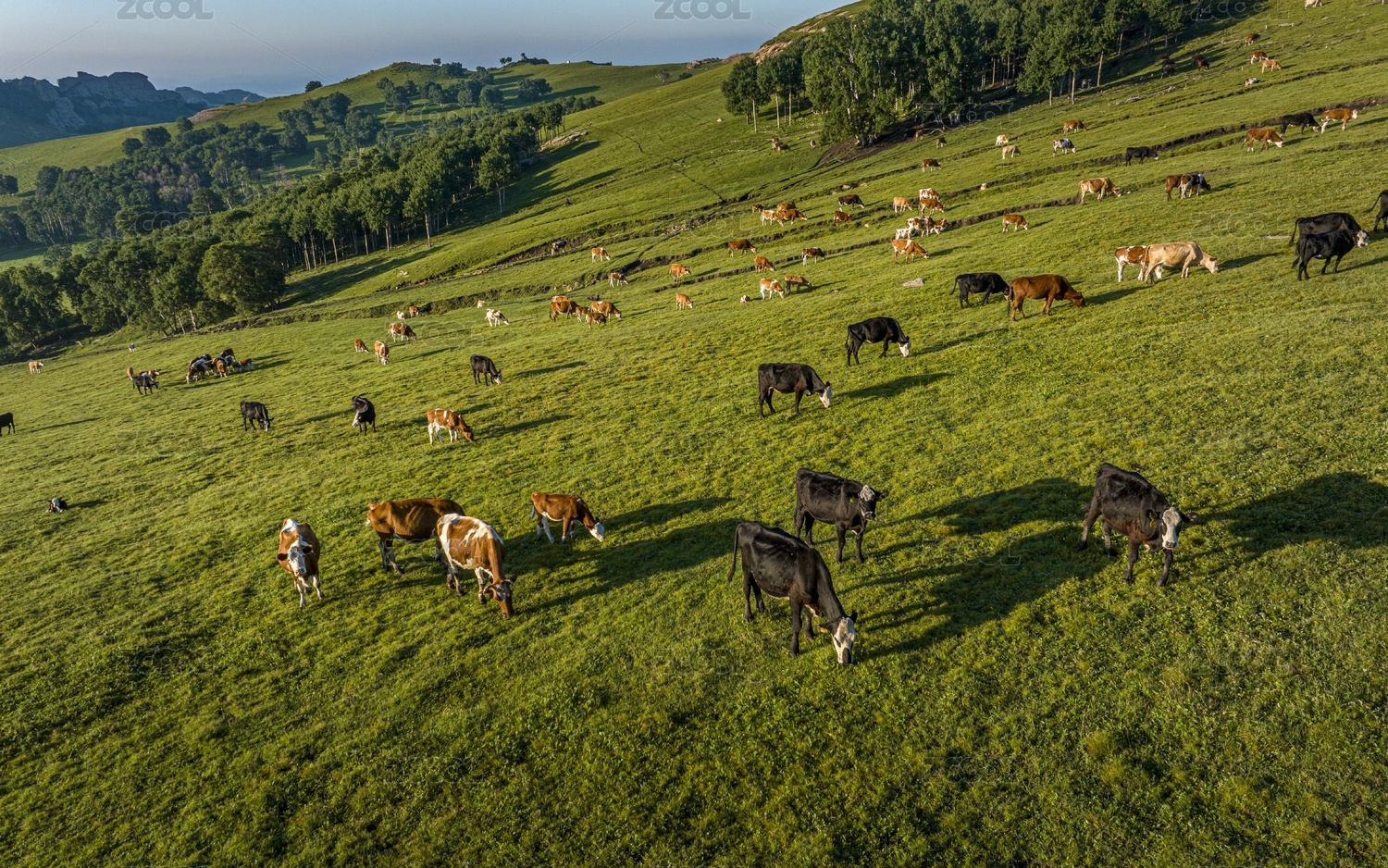 草原上吃草的牛群
