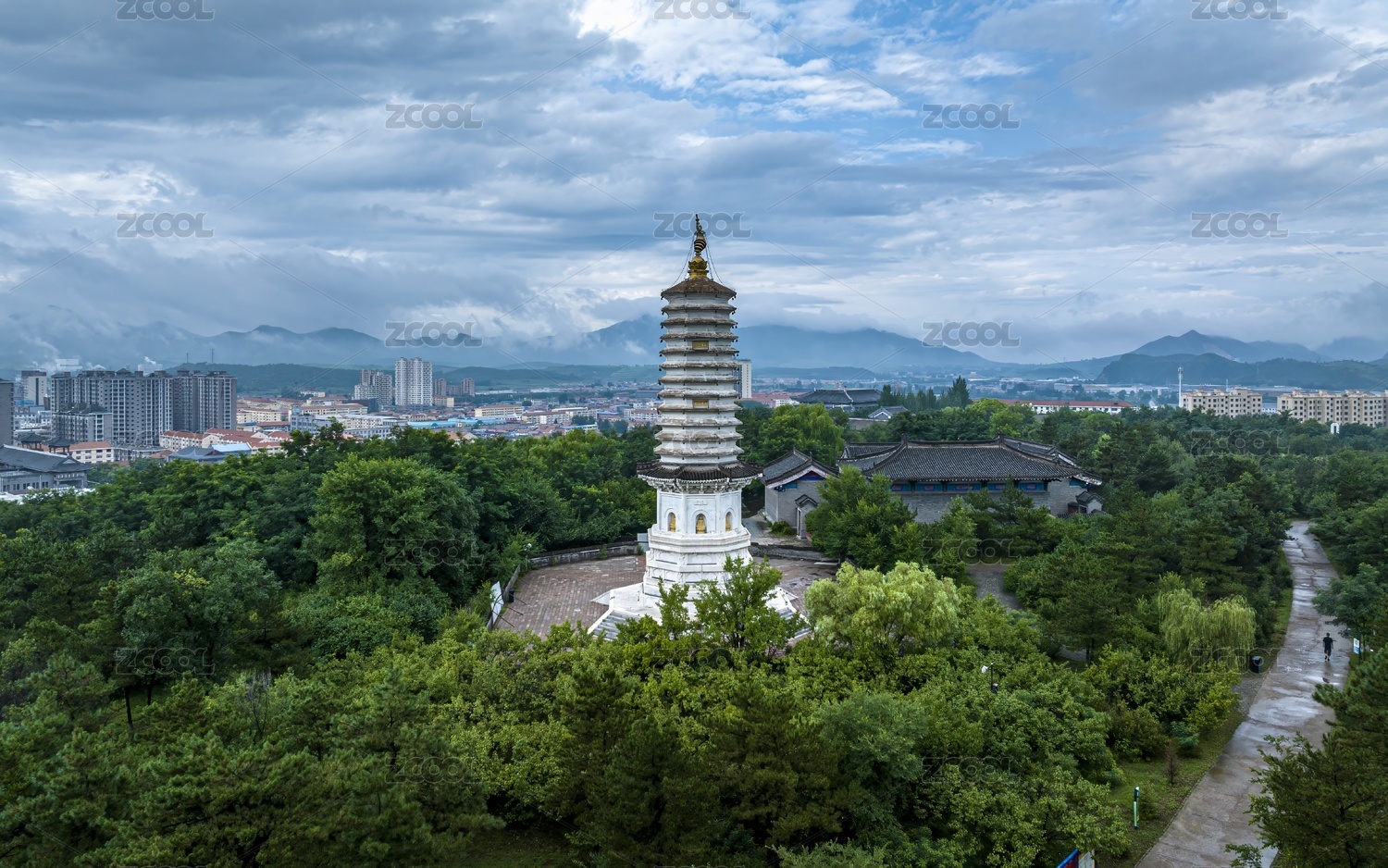 河北省,承德市,平泉市,泽州园,航拍,城市景观,古塔,建筑,文化遗产,地标建筑