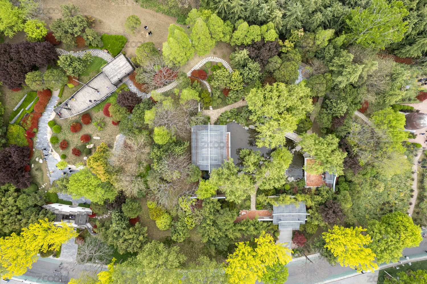 陕西西安长安区清凉山城市公园建筑风光航拍