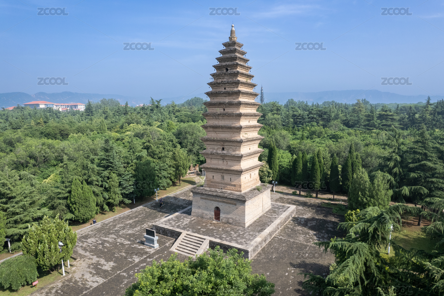 河南省郑州市登封市嵩山太室山嵩岳寺塔航拍