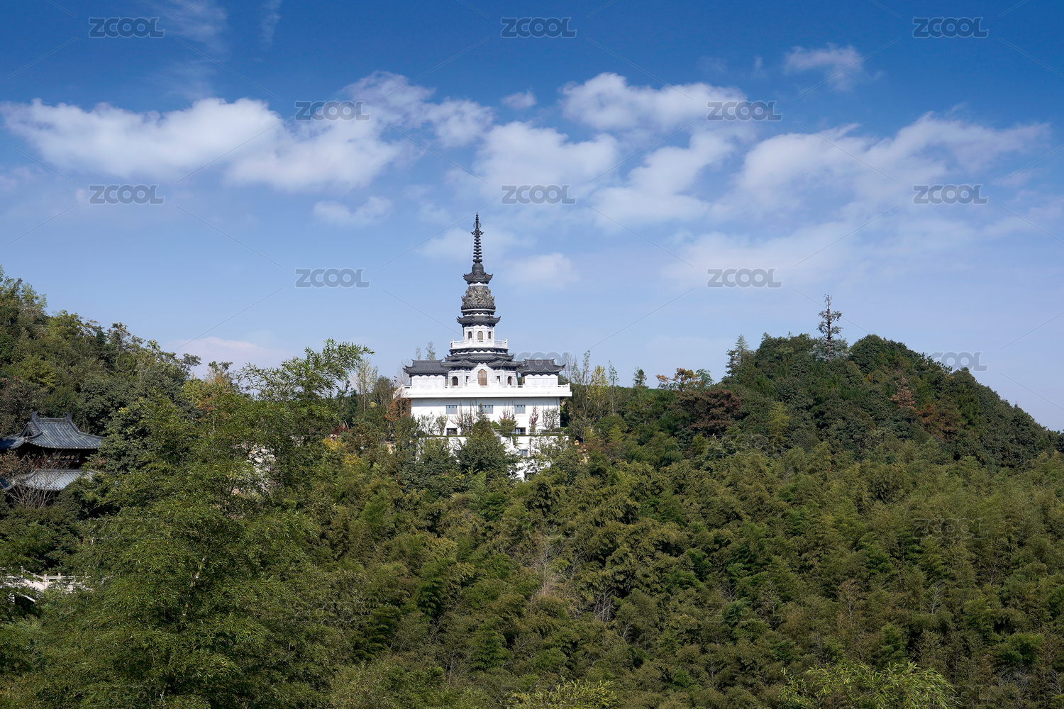 绍兴市上虞区永元寺山间古塔云雾缭绕