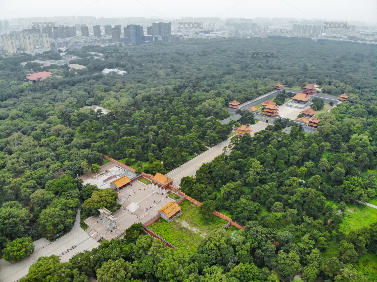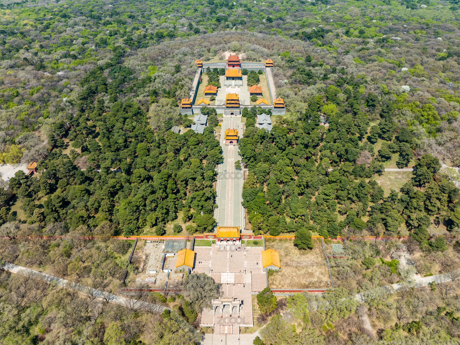 航拍,鸟瞰,沈阳,清昭陵,北陵公园,皇太极,植被,绿植,森林,公园