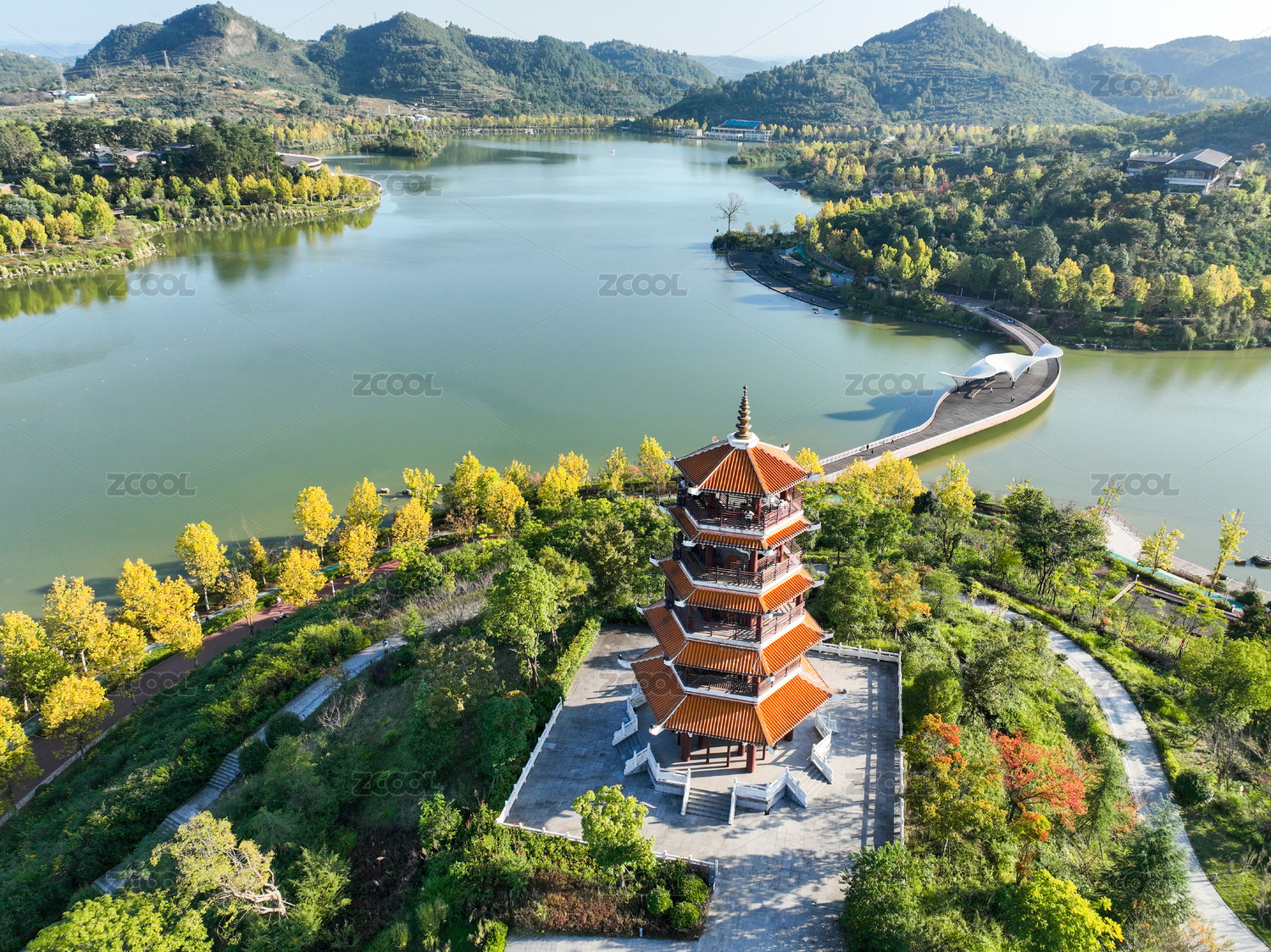 贵州省遵义市新蒲新区白鹭湖公园秋色